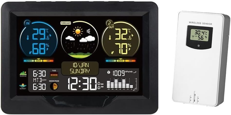 Fangxuee Station Météo, Réveil Numérique avec Écran Couleur, Température Intérieure et Extérieure, Hygromètre, Horloges de Bureau
