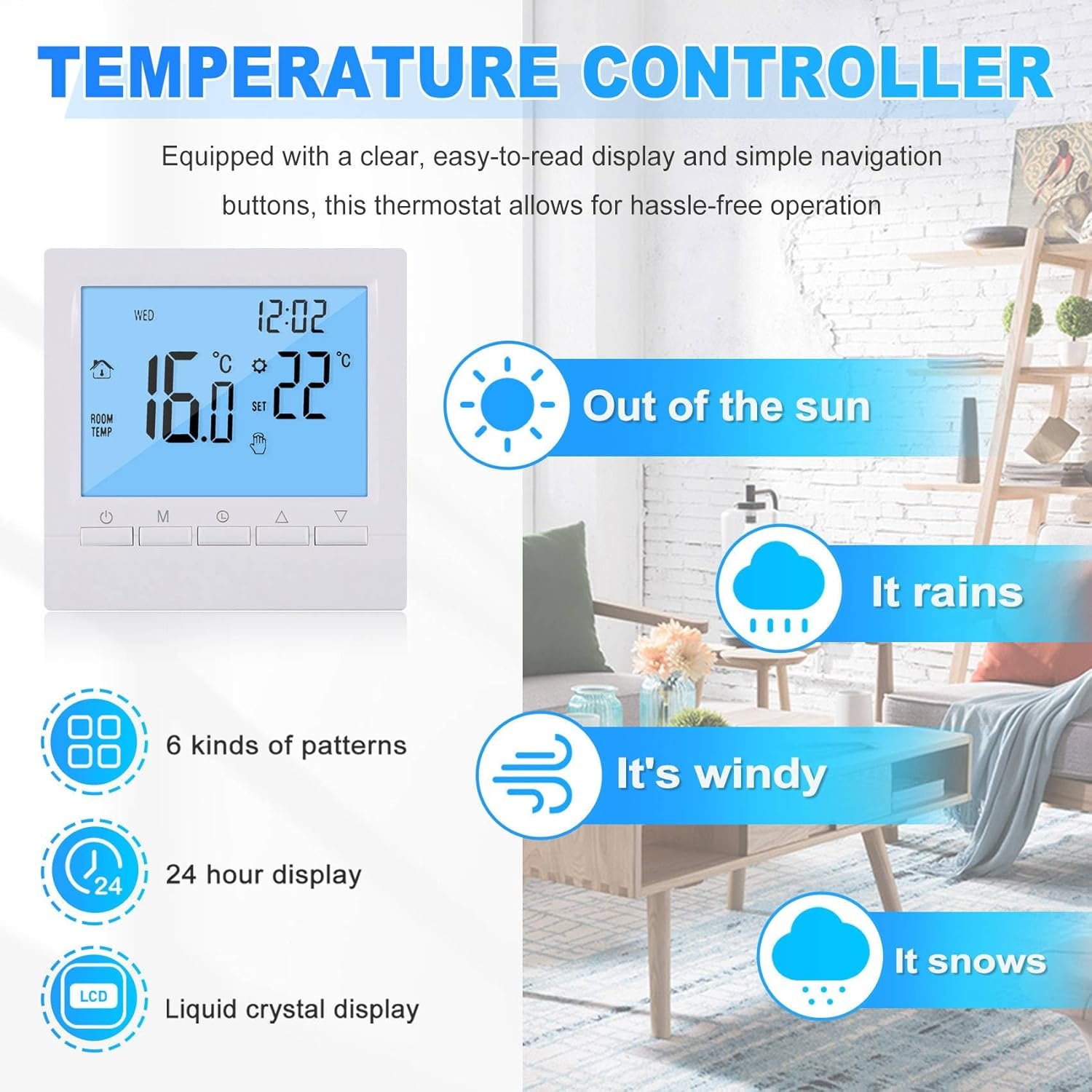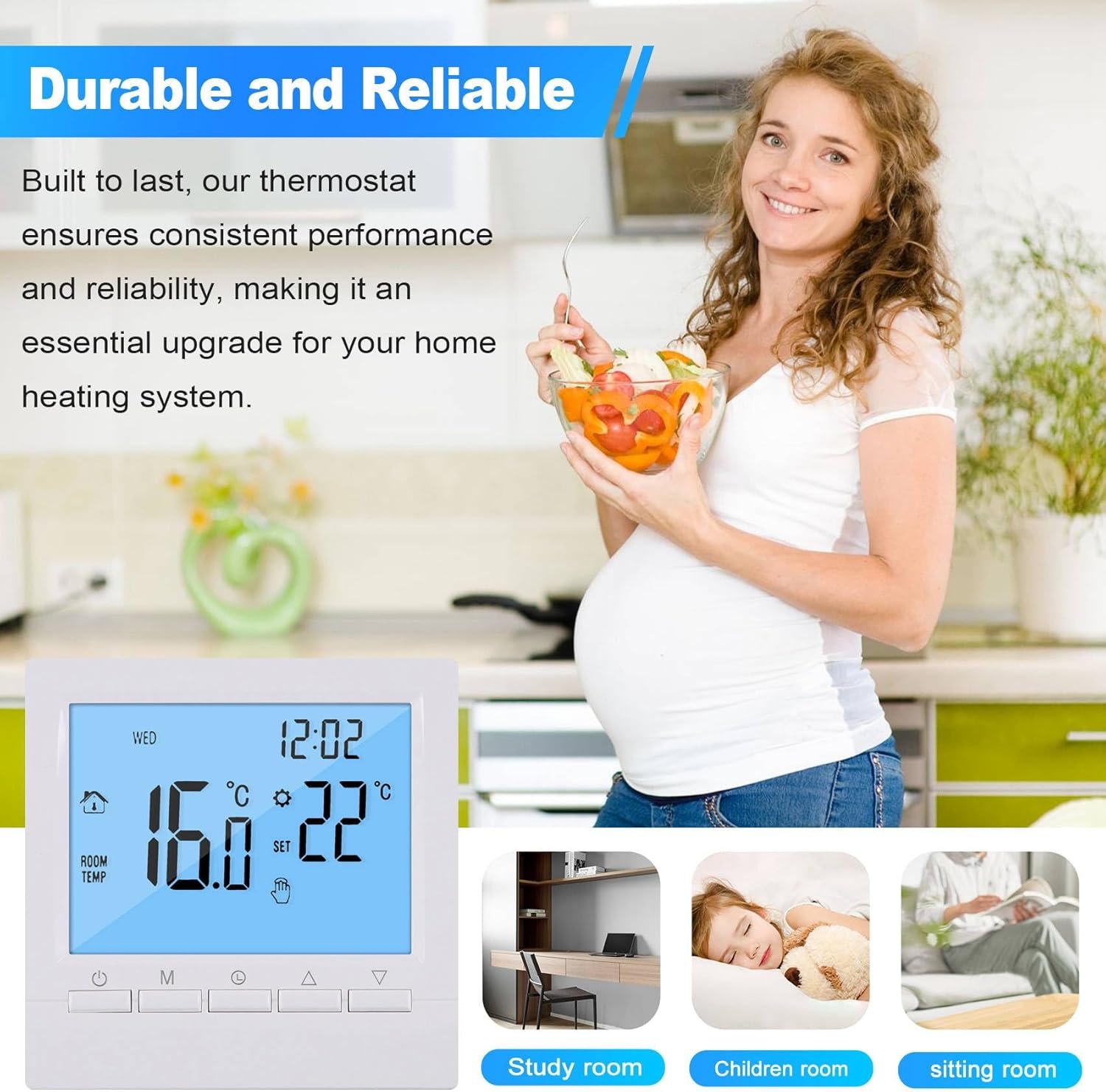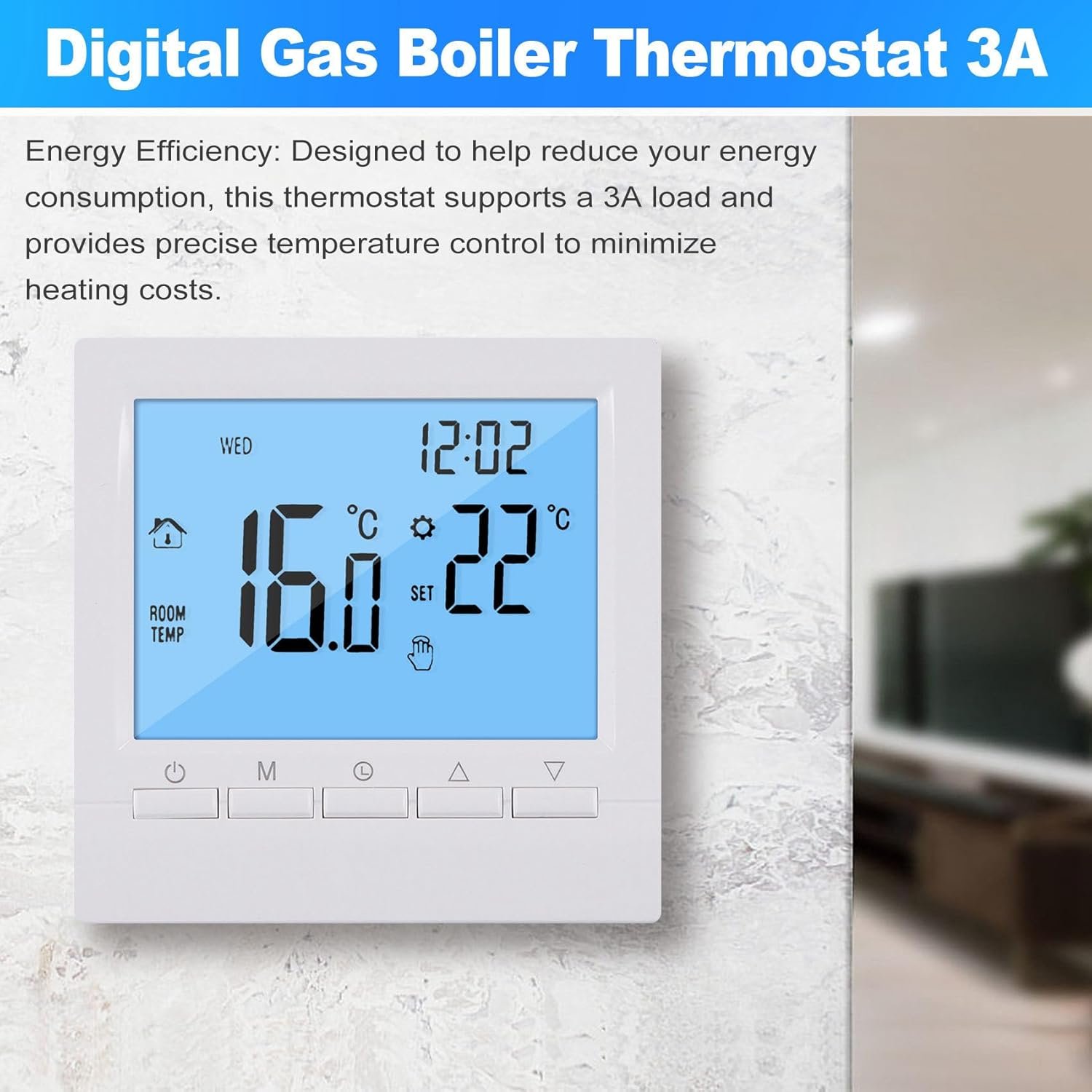 Fangxuee Thermostat Numérique Programmable 3A avec Contrôleur de Température Hebdomadaire pour un Chauffage Domestique Efficace. Ecran Rétro-Éclairé Blanc.