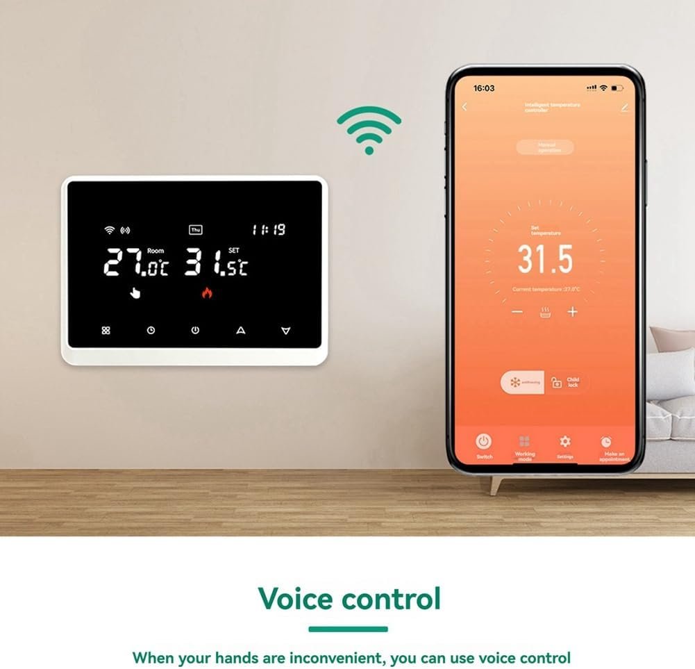 Fangxuee Thermostat WiFi Intelligent, Contrôleur de Température Sans Tuya pour le Chauffage de L’Eau de la Chaudière à Gaz, Fonctionne avec Home Control