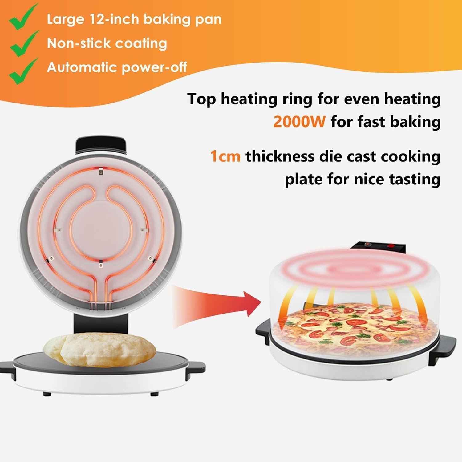 Four à pizza électrique, machine à pain arabe de bureau, fabricant de pizzas et crêpes de 30 cm (12 pouces), régulation automatique de la température, chauffage rapide jusqu’à 250 ℃,Red