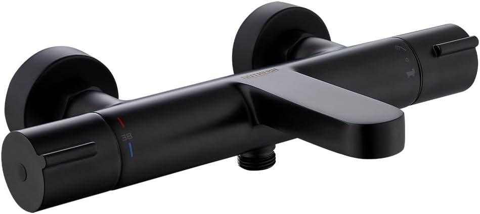 GOTHERN G31004 Robinet de baignoire thermostatique pour douche et baignoire Robinet mitigeur mural (noir)