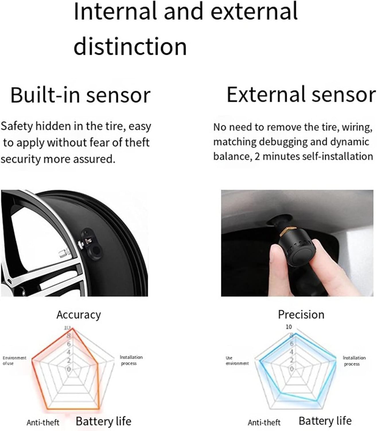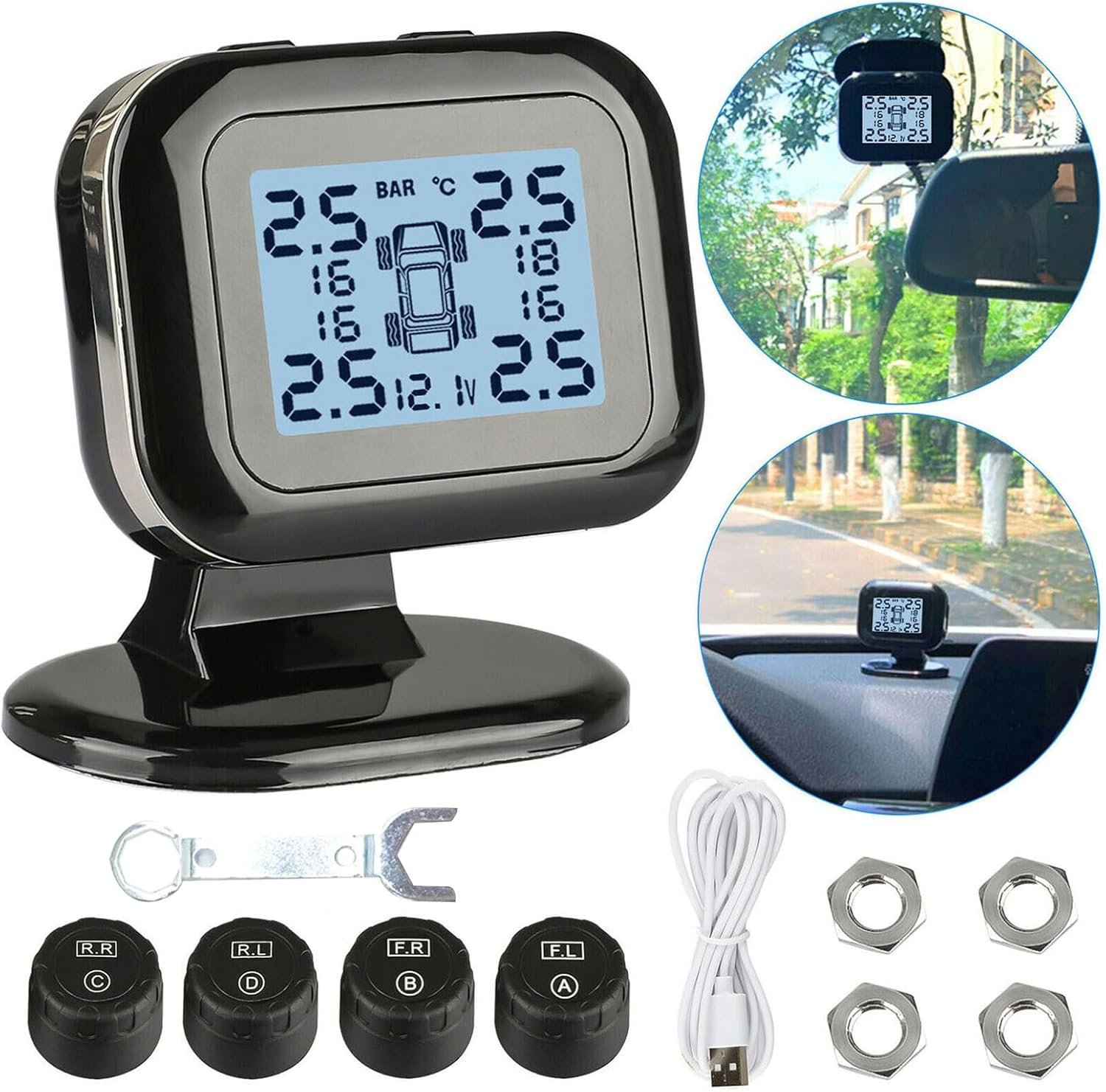 Gramigg Alarme de pression des pneus de voiture LCD TPMS – Moniteur de sécurité automatique – Pression des pneus réglable – Avertissement de température avec 4