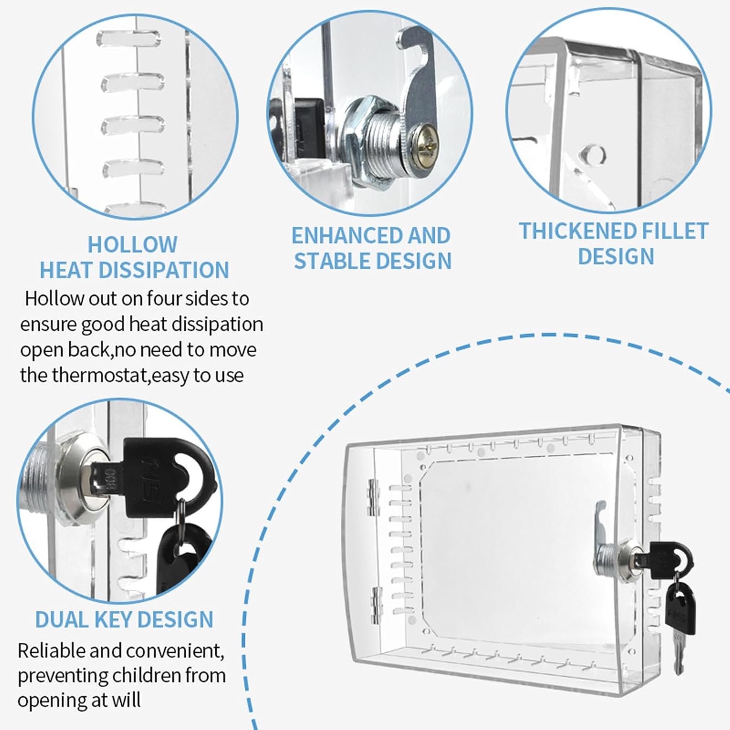 Grande boîte transparente pour thermostats avec ensemble de clés verrouillables pour la maison, le bureau