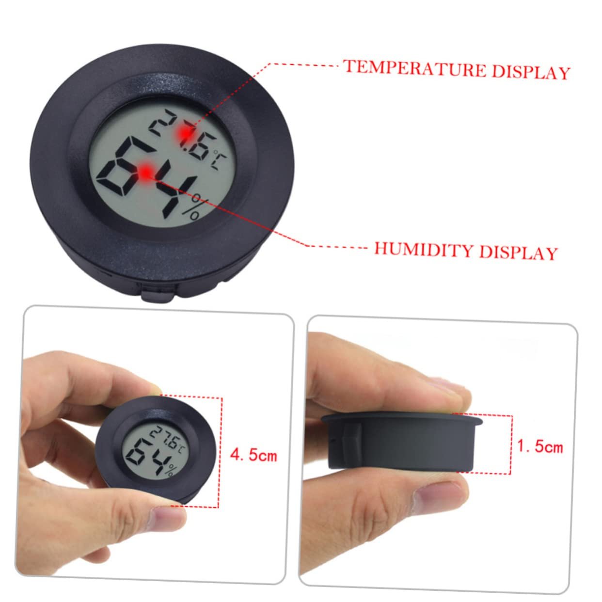 HEMOTON 2 Ensembles Thermomètre Hygromètre Numérique Humidité Accessoires Reptile Humidimètre Numérique Nursery Mini Humidimètre Terrarium Fournitures Black 4 Pièces * 2