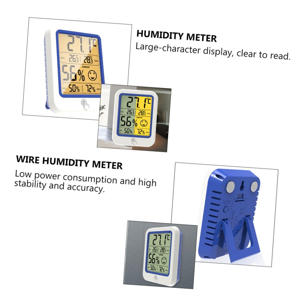 HEMOTON 3 Pièces Hygromètre à température thermomètre intérieur humidimètre hygroscope numérique d’extérieur thermomètre hygromètre numérique Plastique