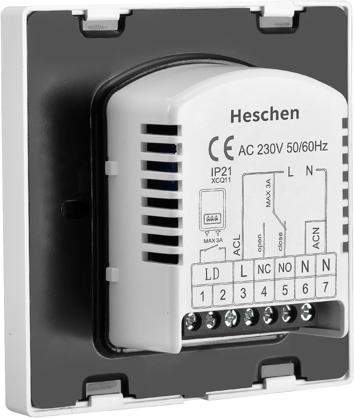 Heschen Thermostat de Chauffage au Sol rayonnant numérique, HS-C505, 230VAC 3Amp, Thermostat de Chauffage par Le Sol, régulateur de température, Travail 7 Jours, Verre trempé, Blanc