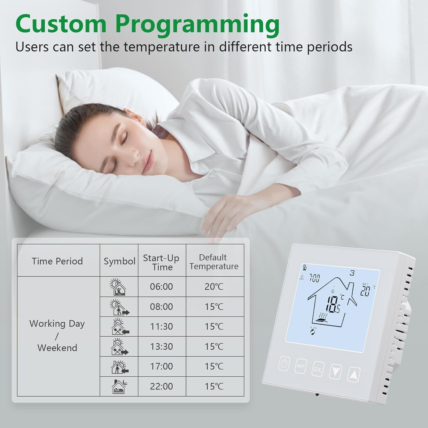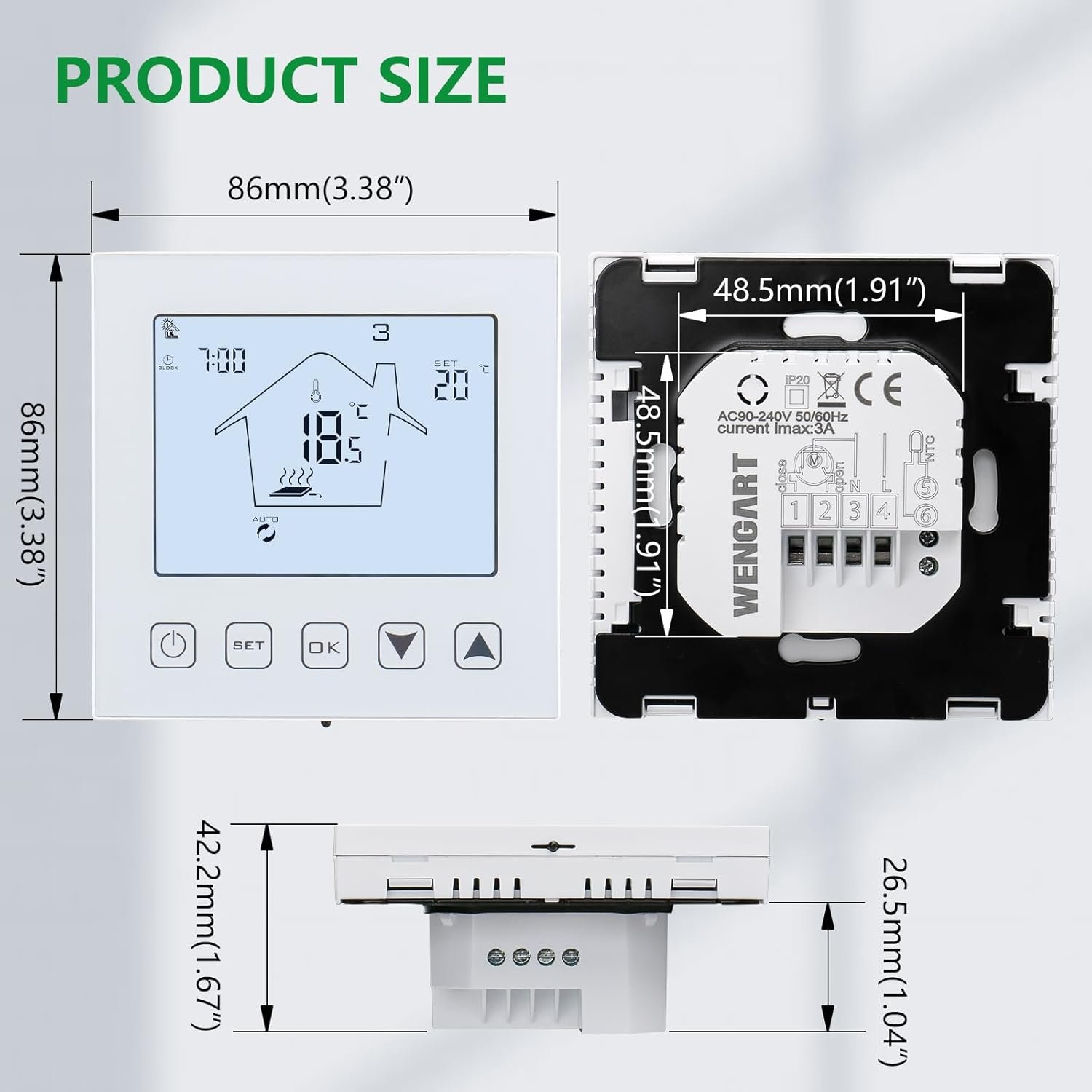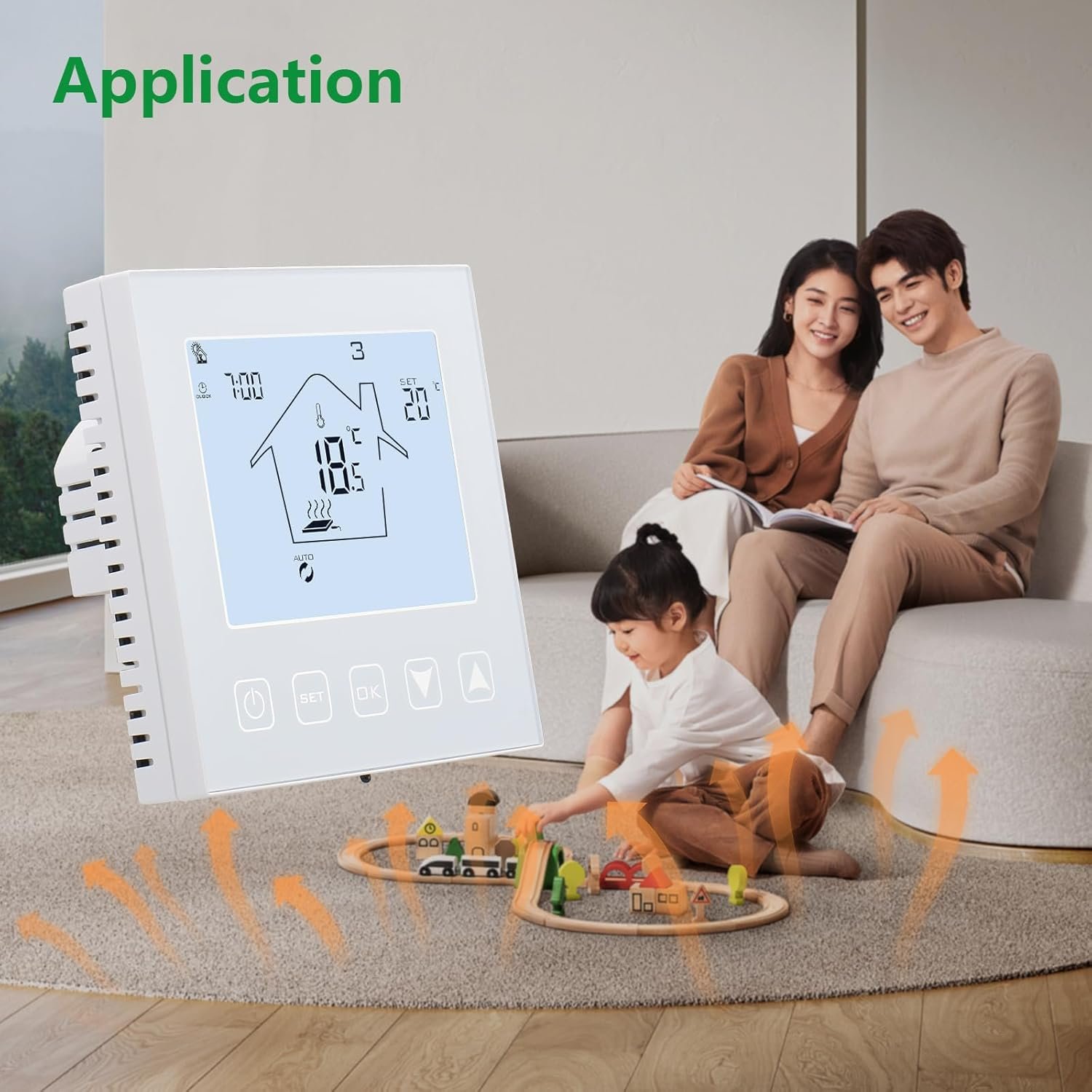 Home Thermostat Programmable WG603, AC230V max3A Écran Tactile LCD Affichage Travail pour Radiant Plancher Chauffant Blanc