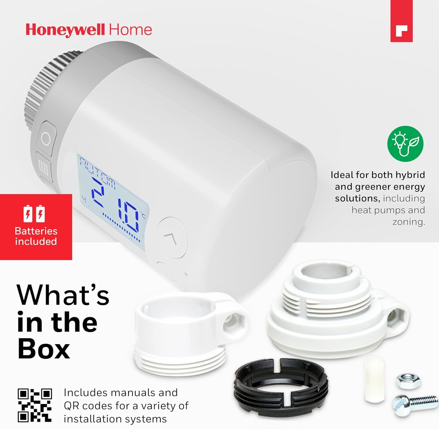 Honeywell Home – HR27 – Vanne de Thermostat de Radiateur Intelligent HR 27 ECO ETRV Vanne de Radiateur Thermostatique Programmable-Contrôleur de Chauffage Central Intelligent Numérique Blanc