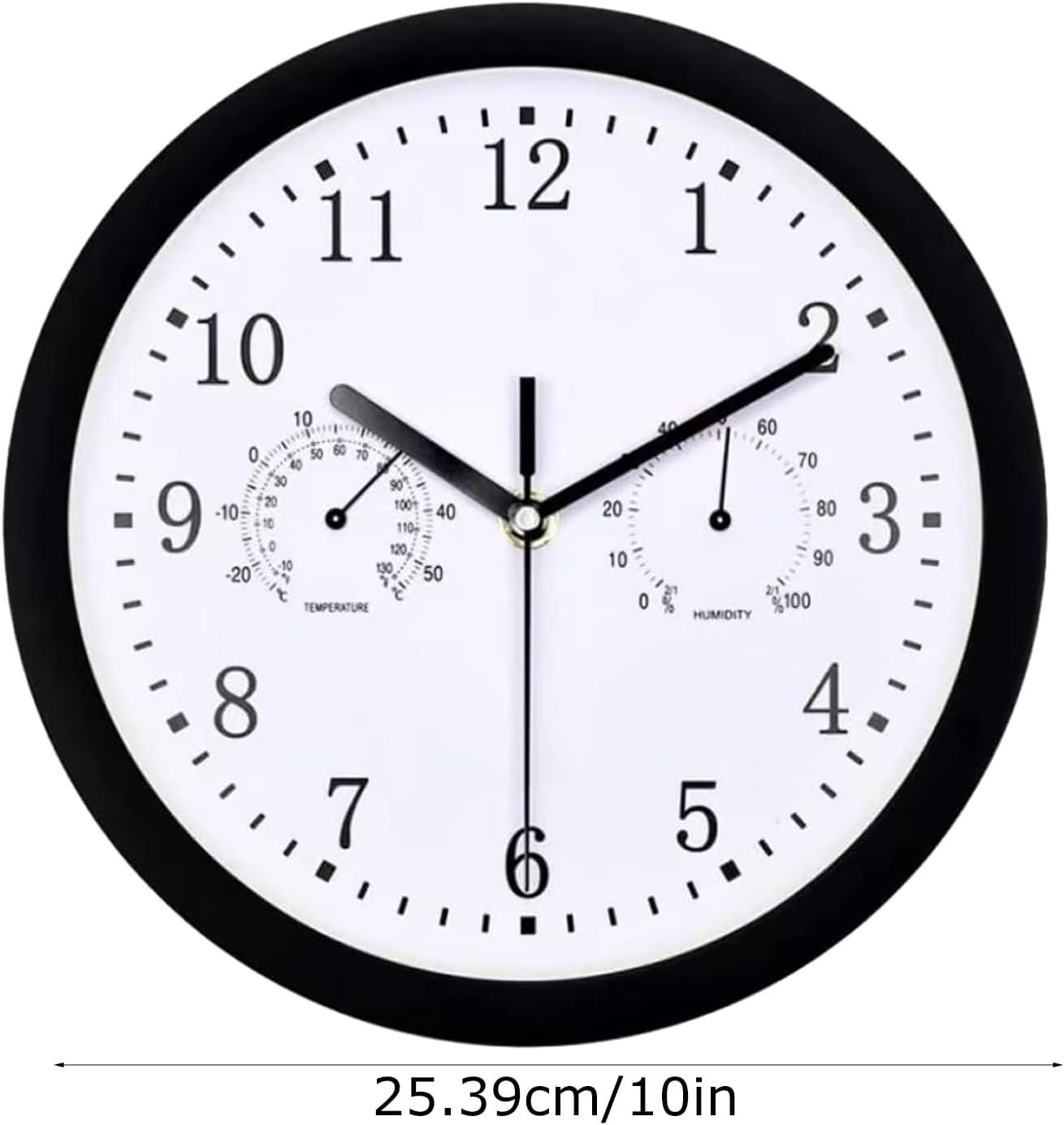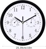 Horloge d’extérieur étanche pour balcon, horloge murale ronde et silencieuse, montre décorative avec hygromètre pour salle de bain, terrasse, porche, piscine, jardin, montre noire résistante aux