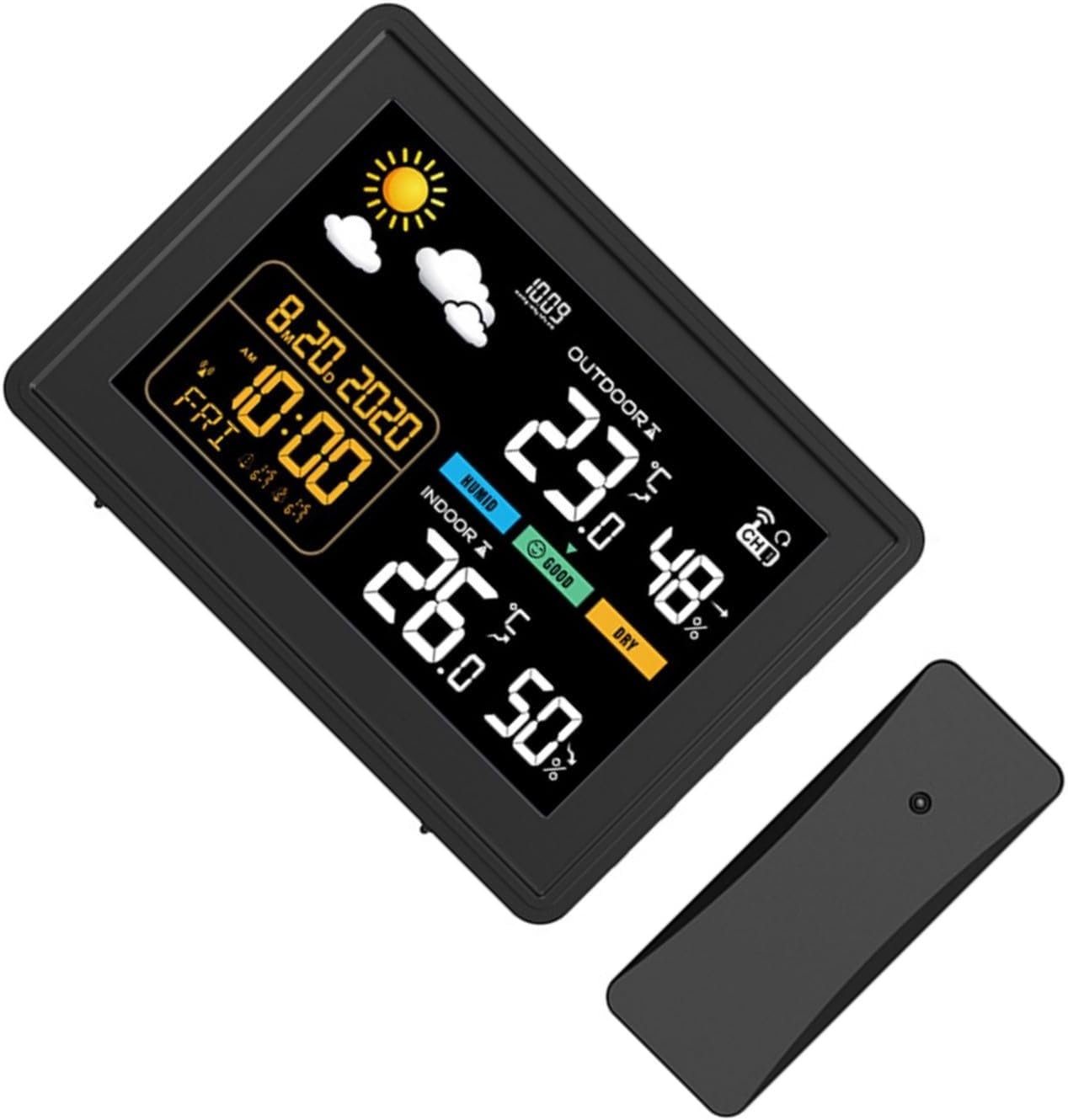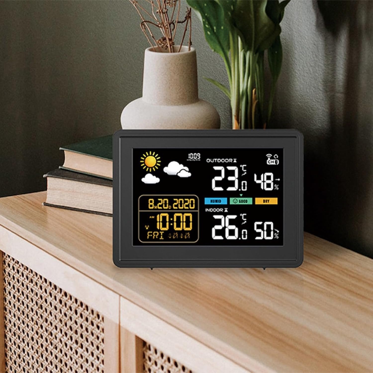 HUAJINGKEJI Stations météo, thermomètres, hygromètre avec réveil, horloge numérique, mesure de la température et de l’humidité, pour bureau, affichage de la température intérieure