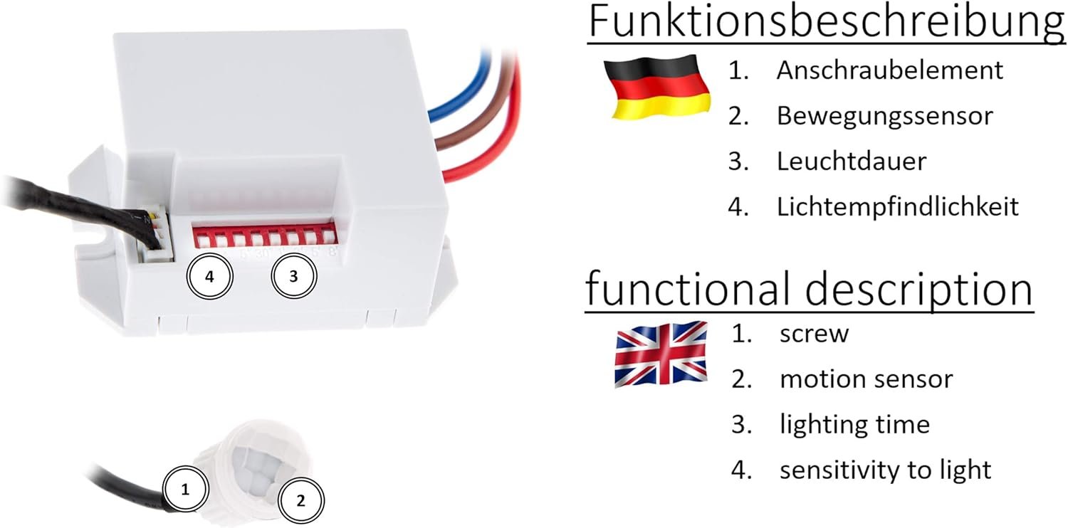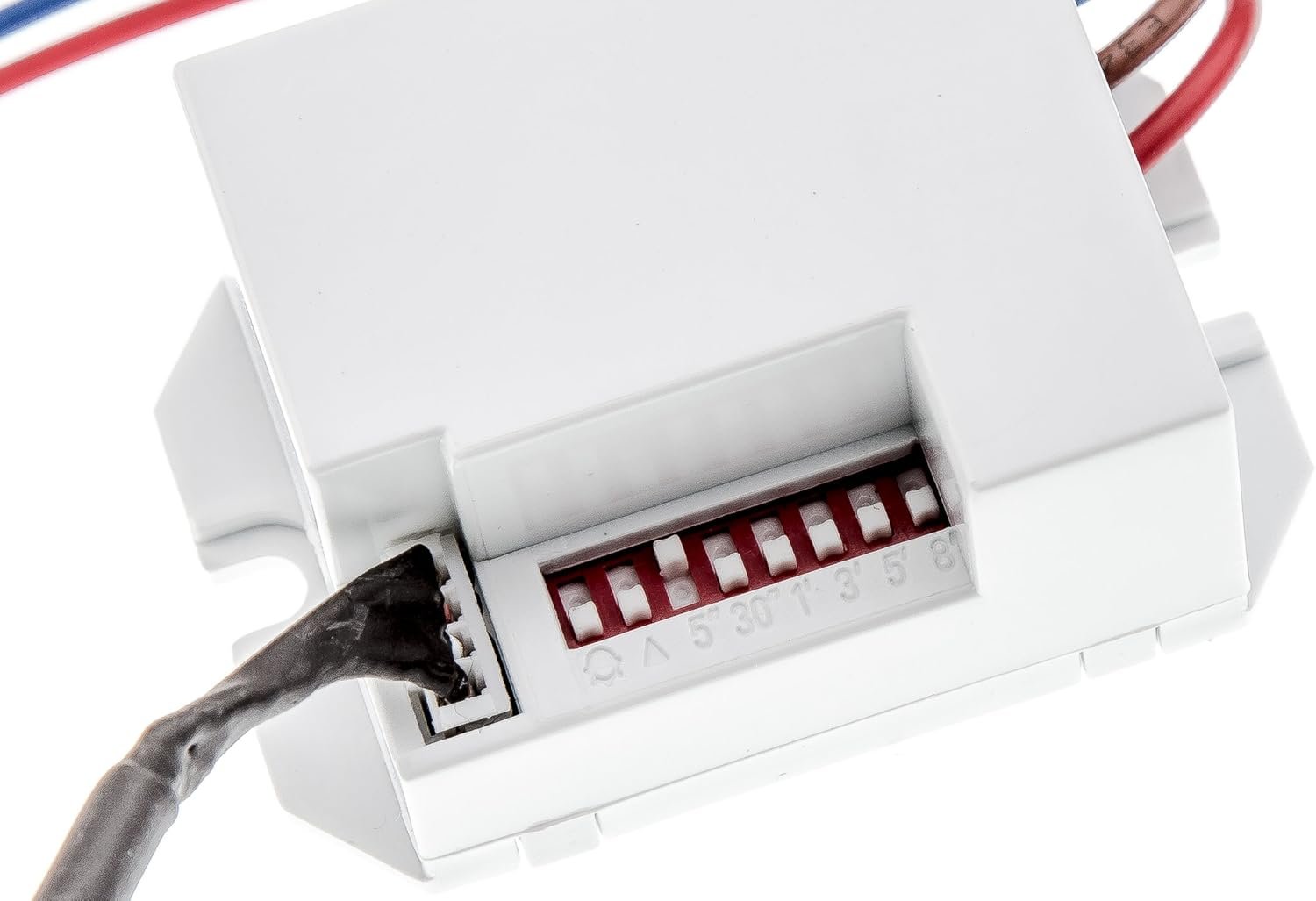 HUBER Motion 18 Mini détecteur de mouvement PIR 120° / 360° pour montage intérieur/extérieur I Capteur IP65 I Détecteur de mouvement encastré 230V petit, avec interrupteur DIP