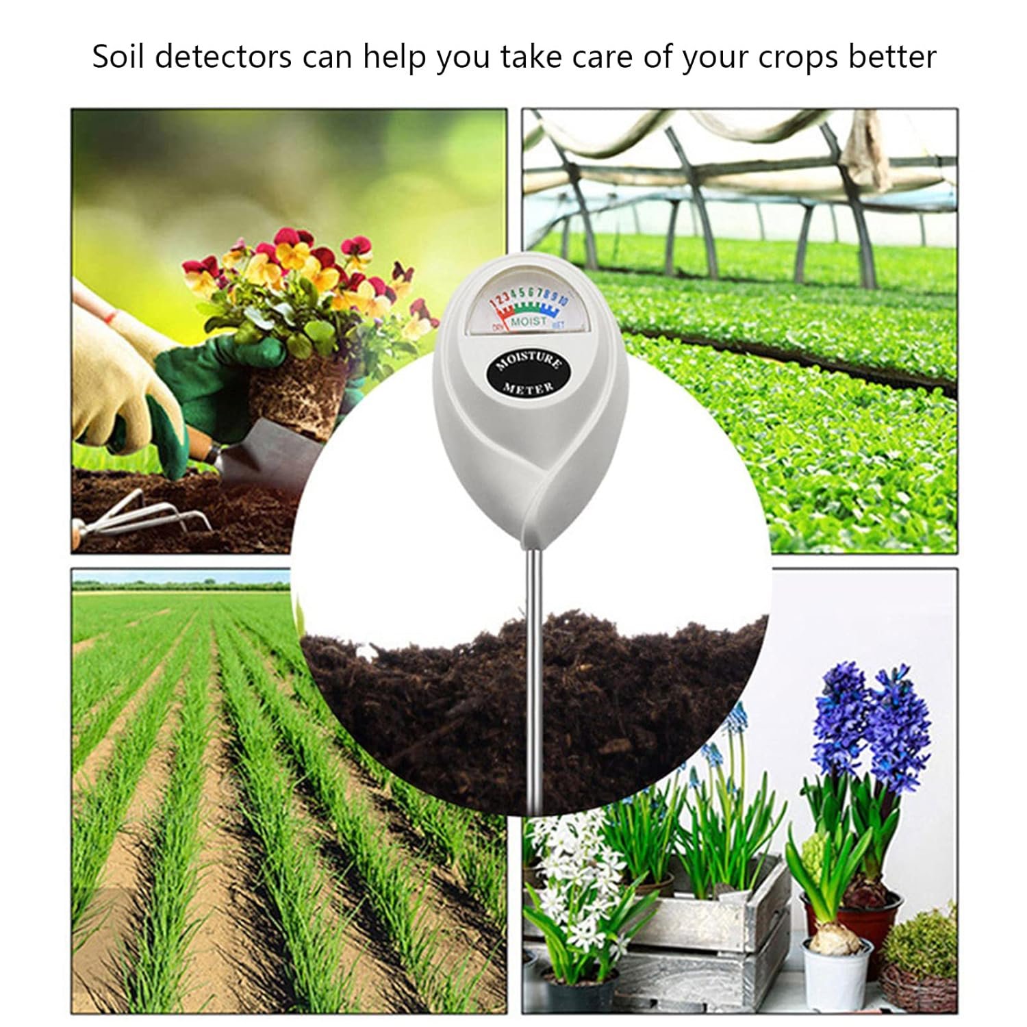 Hygromètre de sol pour plantes et eau – Pour le jardinage et l’agriculture – Intérieur et extérieur – Sans batterie
