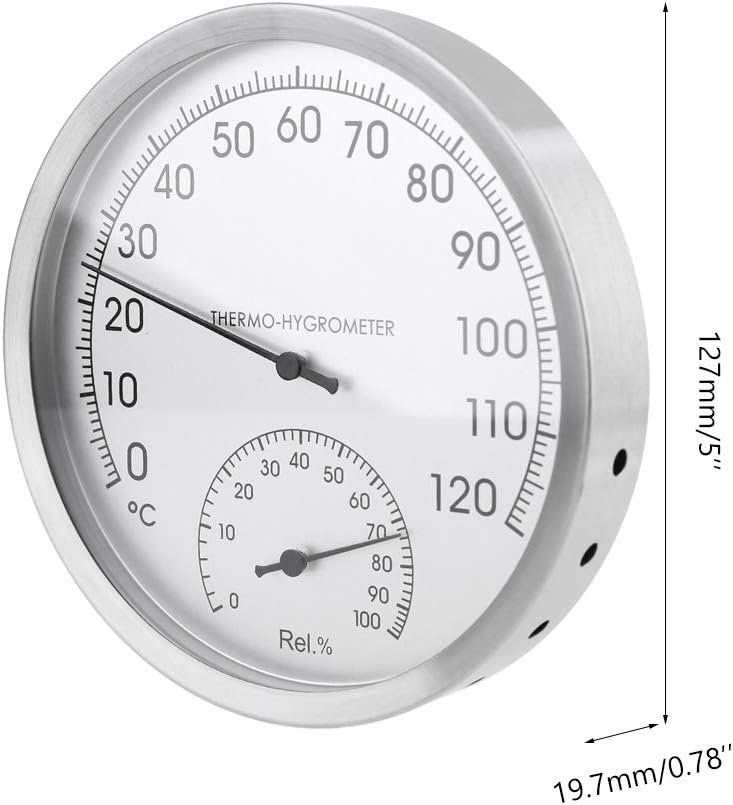 Hygromètre mural intérieur extérieur avec boîtier en acier inoxydable pour sauna, chambre, maison