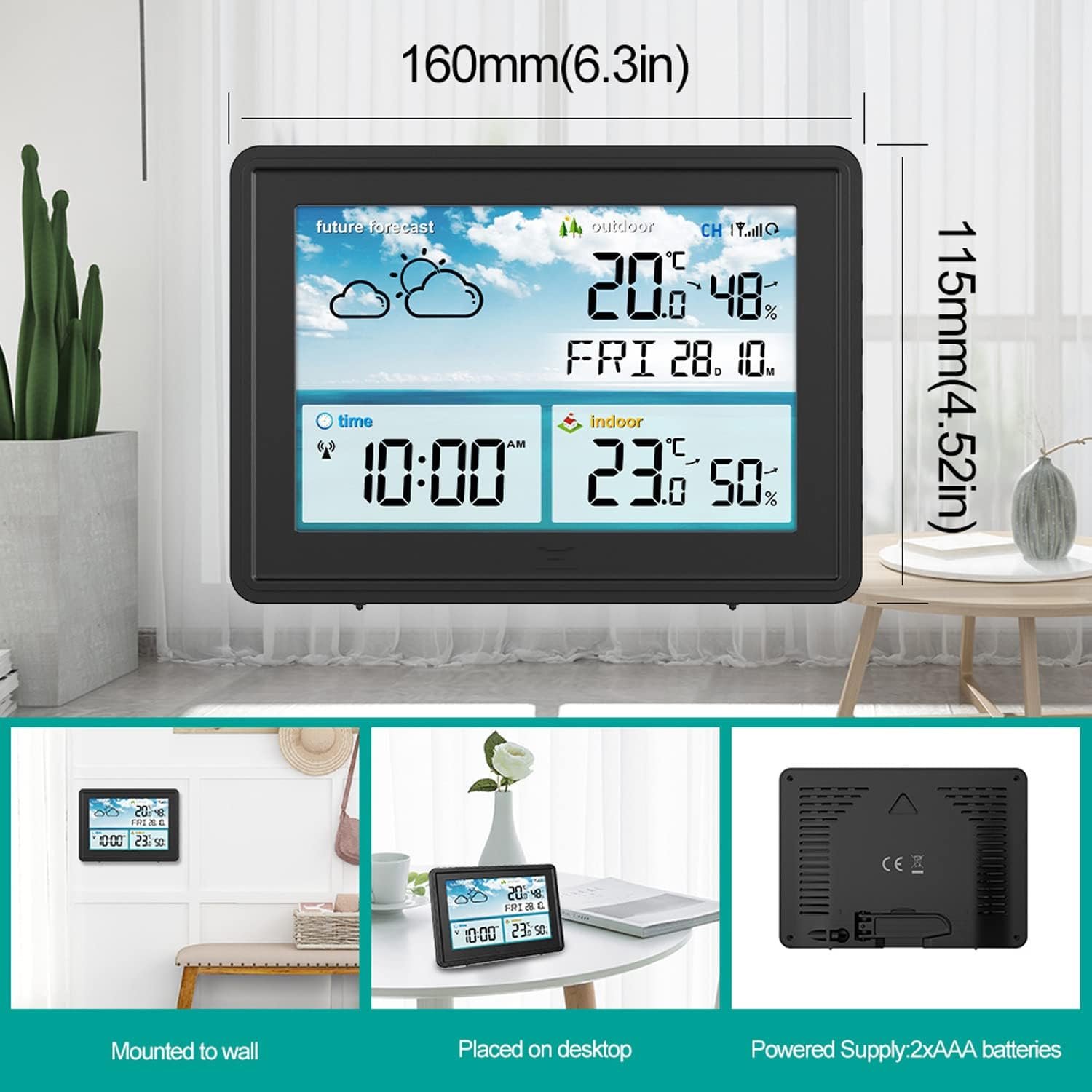 HYQNG Station météo numérique sans Fil, thermomètre avec écran LCD Couleur, hygromètre avec capteur Forcast Point de Givre, Calendrier, réveil, pour gymnases, Bureaux, salles de Classe, Maison