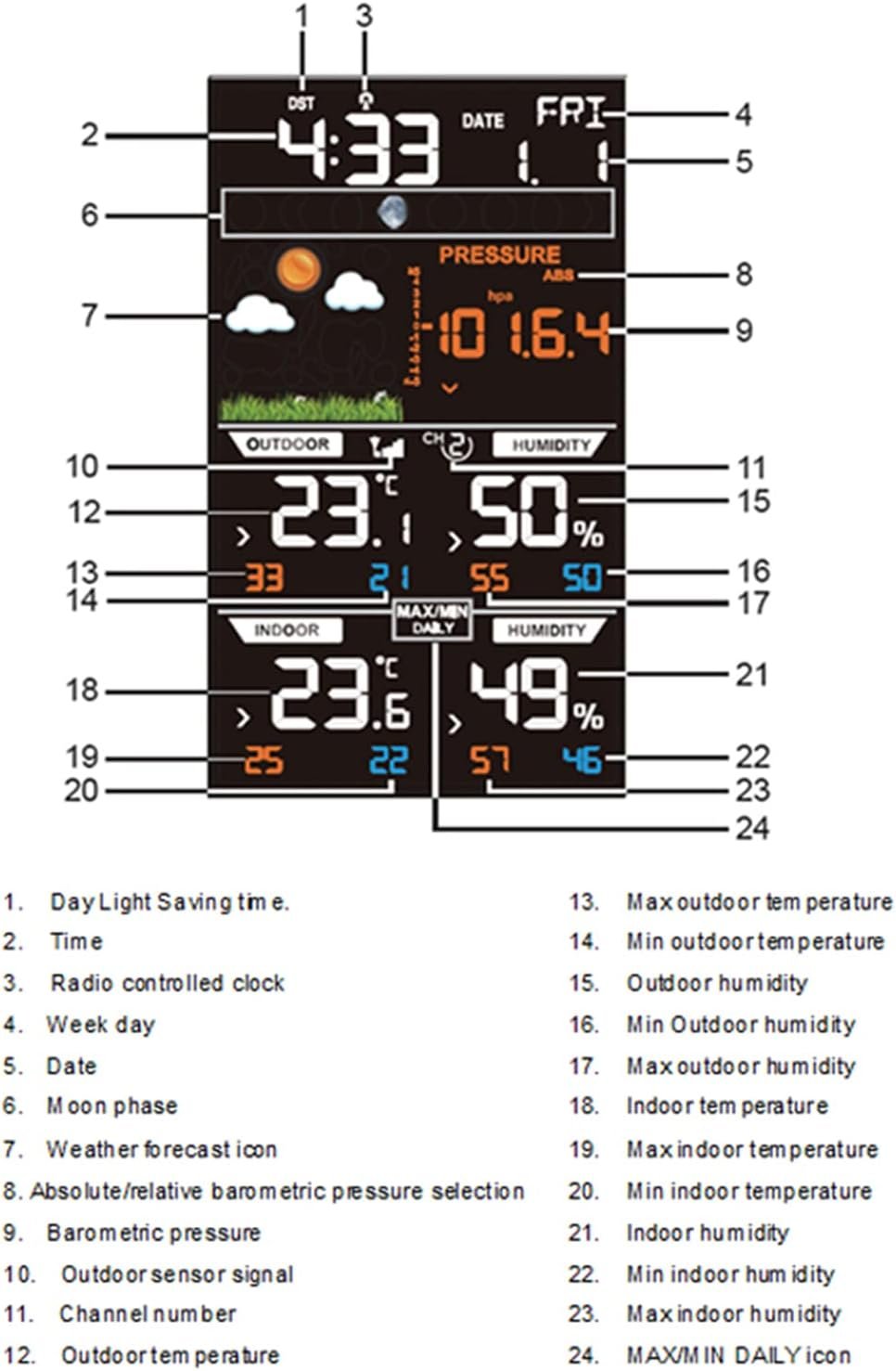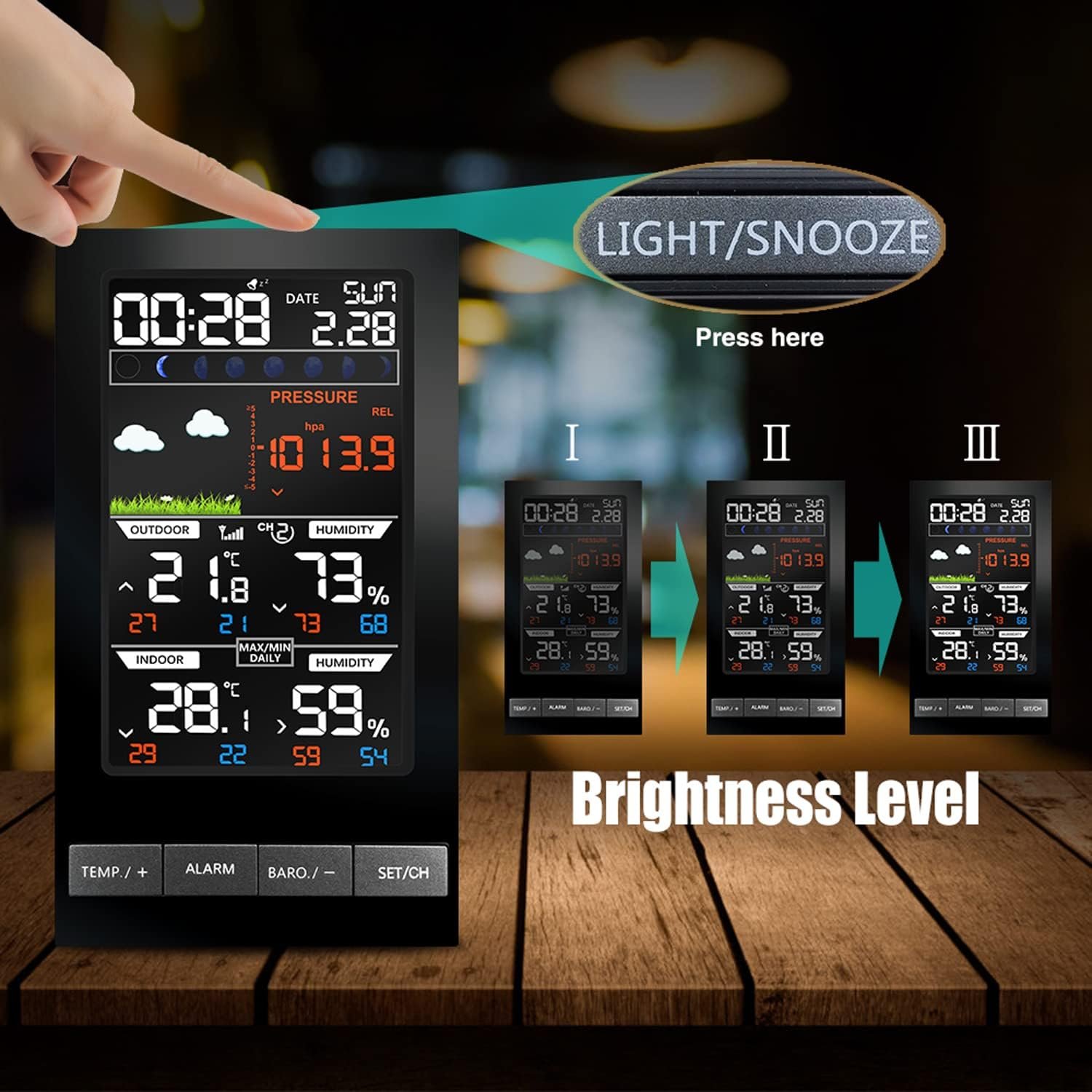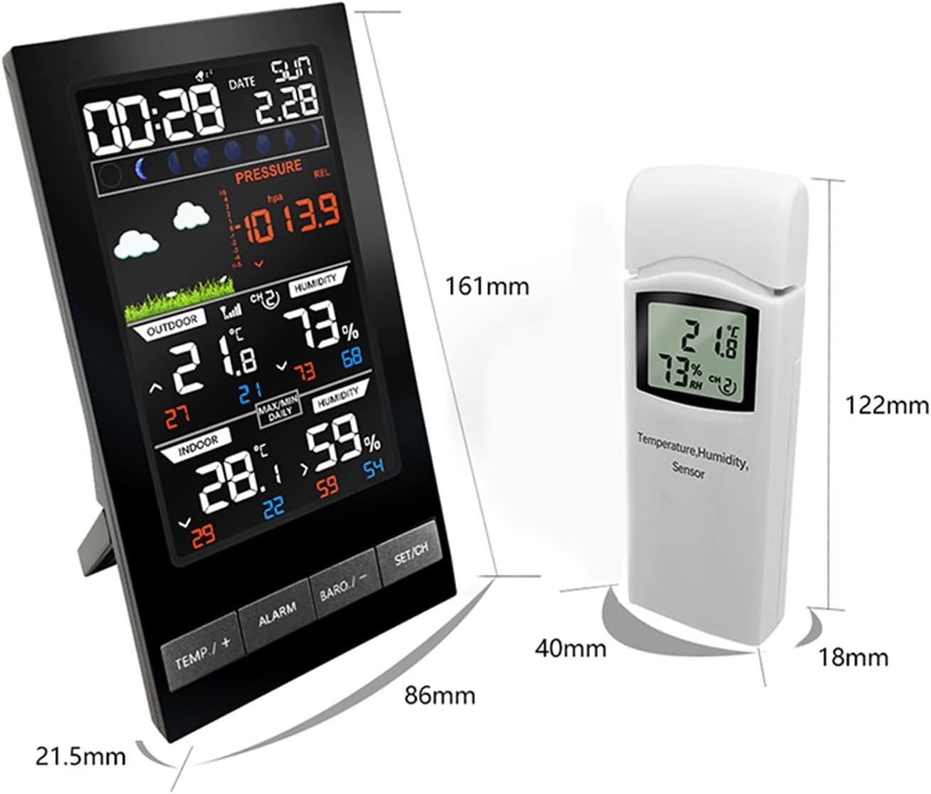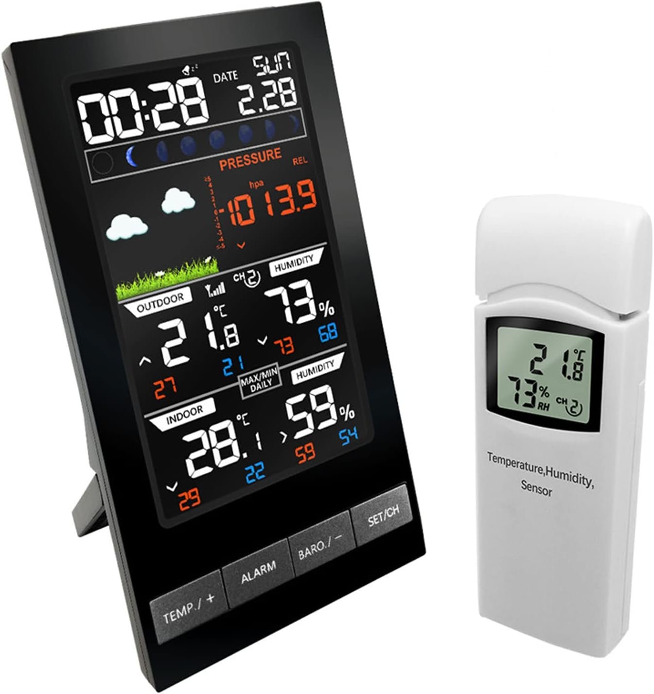 HYQNG Stations météo, Moniteur de température, Station météo sans Fil pour intérieur extérieur, baromètre, thermomètre, hygromètre, contrôle Radio des prévisions météorologiques, réveil