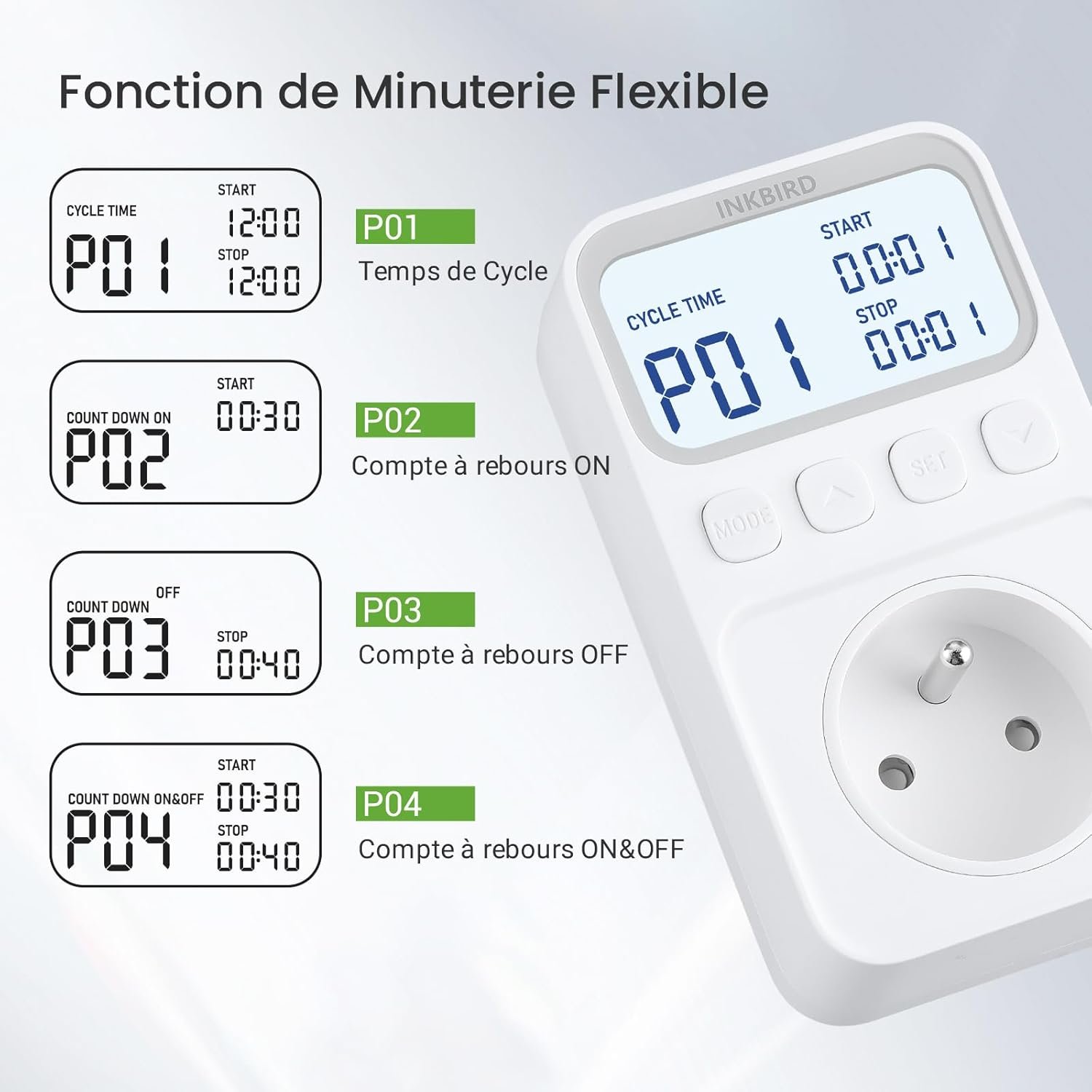 Inkbird C226T Prise Thermostat, Regulateur de Temperature Chauffage Refroidissement avec Minuterie pour Serre,Reptile,Terrarium,Maison(FR Prise)