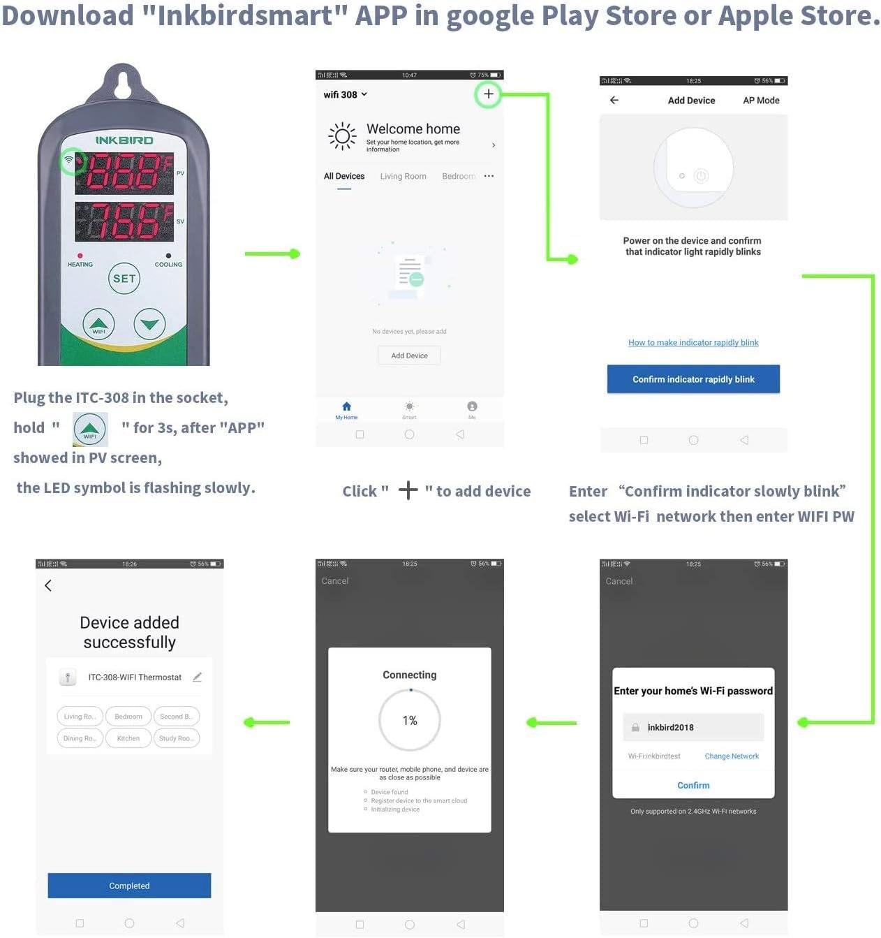 Inkbird Combinaison ITC-308-WIFI Prise Thermostat Chauffage Refroidissement Regulateur de Temperature et IHC-200-WIFI Contrôleur Humidité Hygrostat pour Terrarium,Fumage,Couveuse