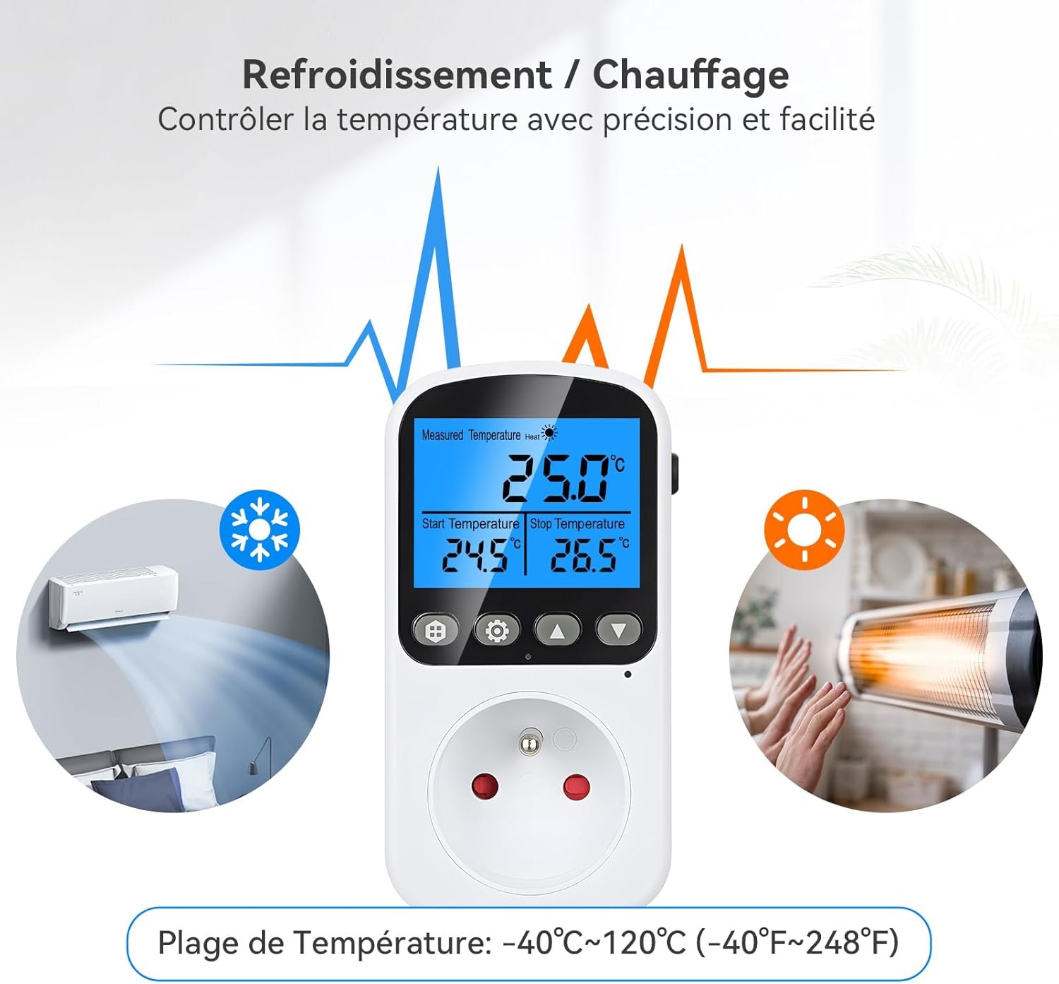 INKBIRDPLUS Prise Thermostat Numérique, Régulateur de Température Thermostat Chauffage Refroidissement, 4 Modes avec Minuterie, Ecran LCD pour Reptile Terrarium Aquarium Maison