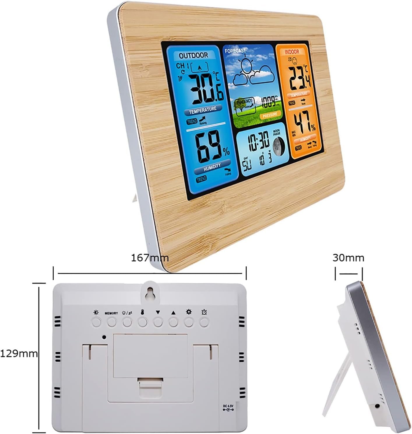 JLOZDM Stations météo, sans Fil avec capteur intérieur et extérieur, Station météo numérique LCD avec Alerte/température/humidité/barométrique/prévision/Phase de Lune/réveil