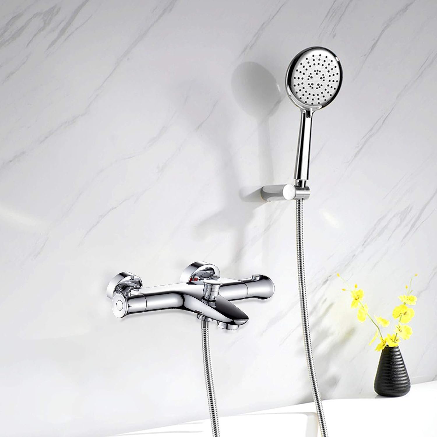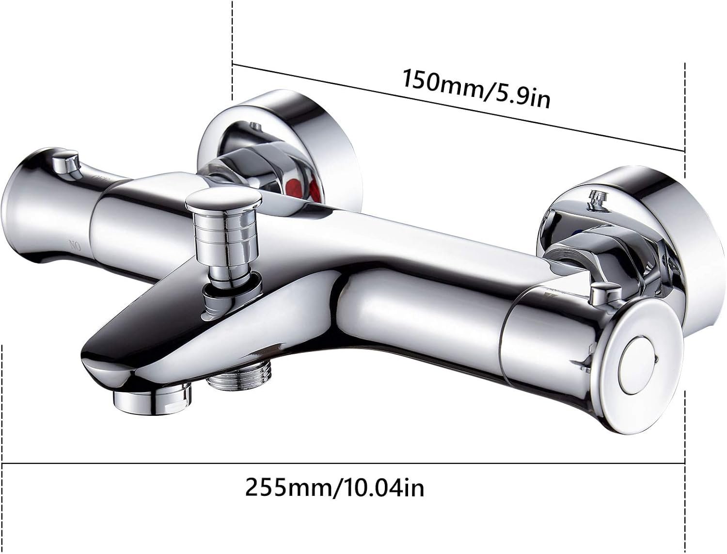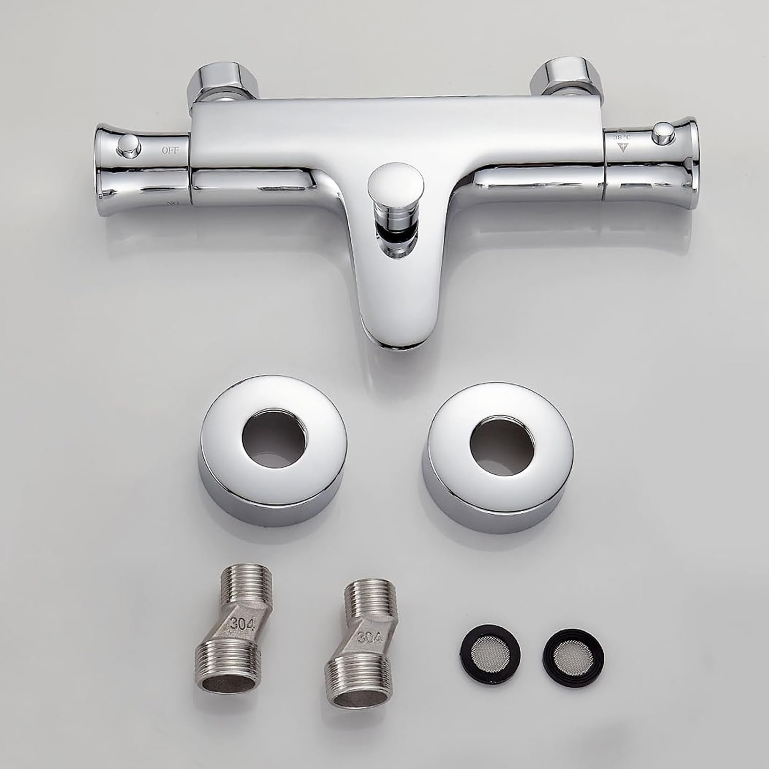 kisimixer Mitigeur Baignoire Thermostatique avec Bouton de SéCurité 38 °C,Mitigeur Thermostatique Bain et Douche en laiton,Robinet Thermostatique pour Baignoire 2 sorties d’eau,Chromé Moderne