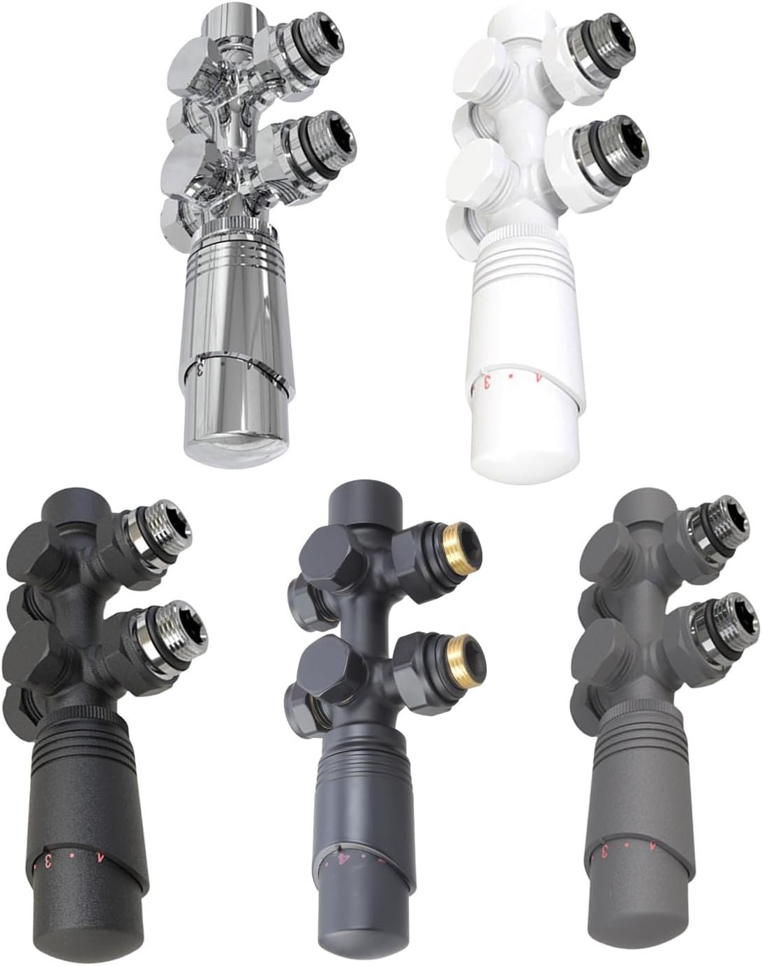 Klaisy Multiblocks Radiateurs Connexion Ensemble Vannes Thermostat Forme D pour Les Accessoires Chauffage Salle Bain Anthracites G1 / 2