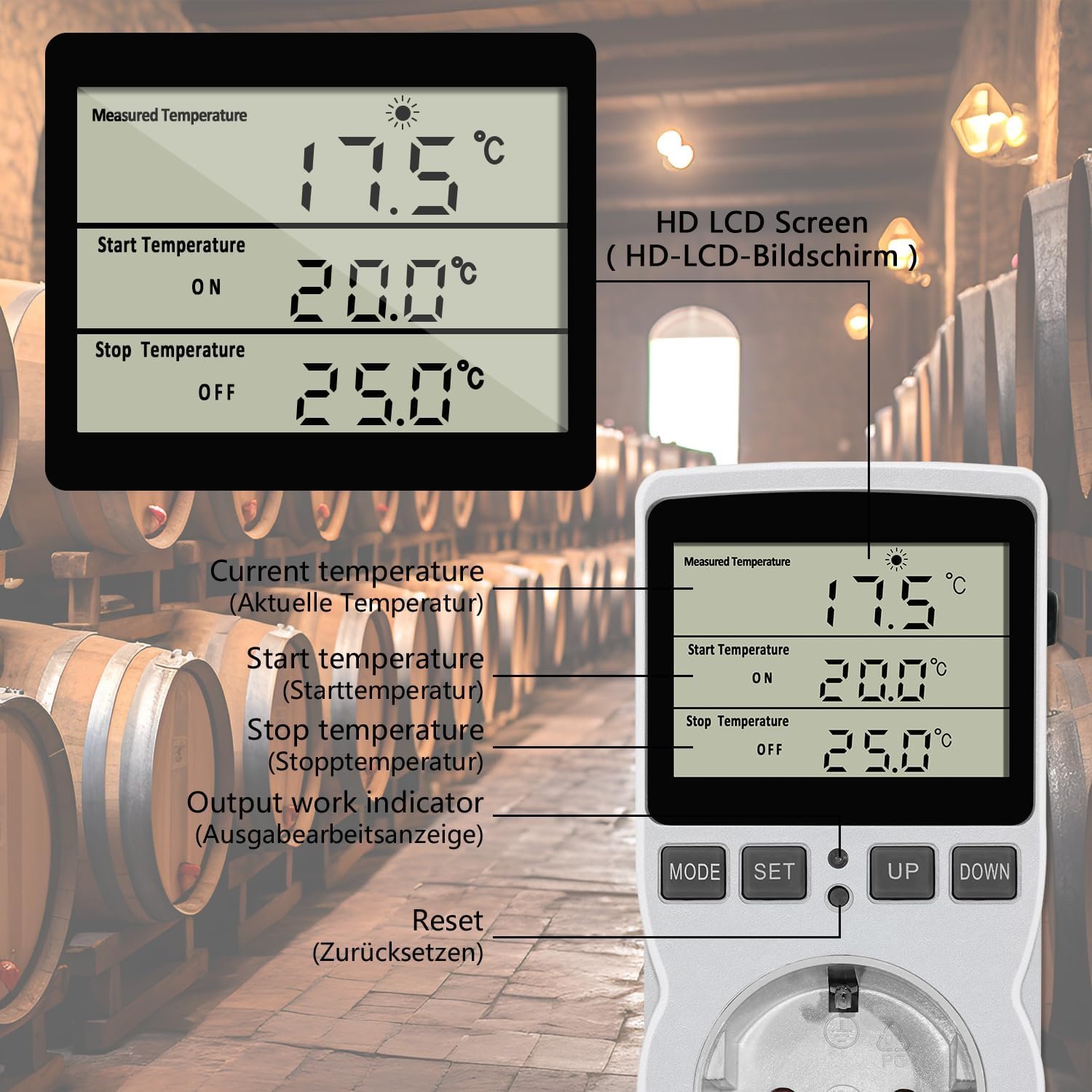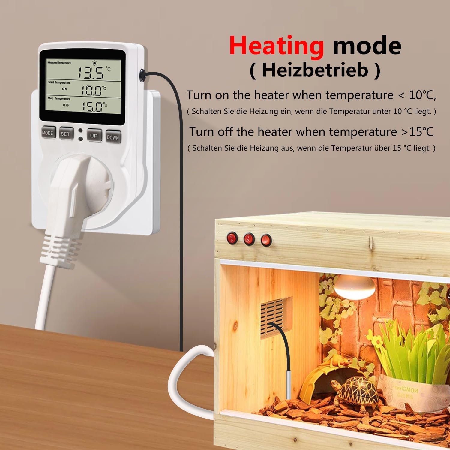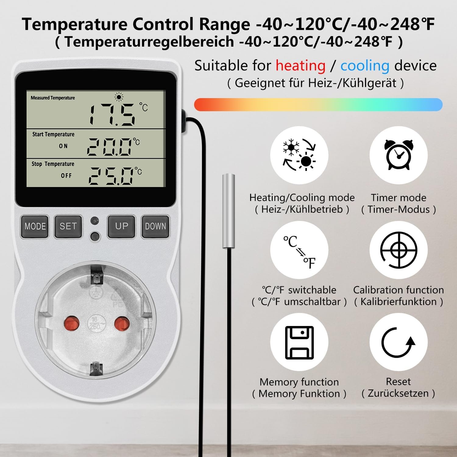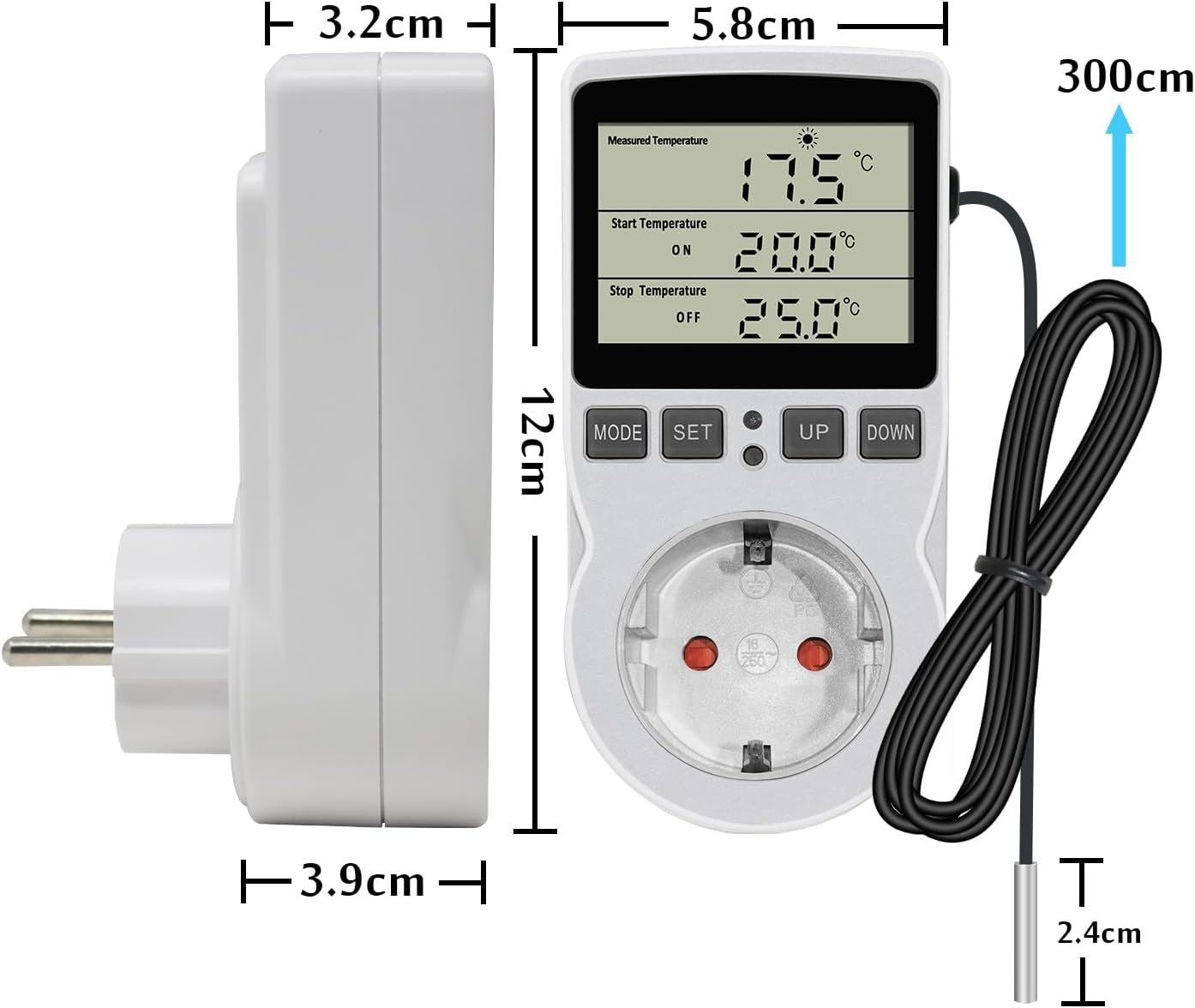 KT3100 Digital Thermostat Temperature Controller Switch Socket 16 A 3 m Waterproof Sensor for Brews Fermentation Aquarium Greenhouse Germination Heating Cooling