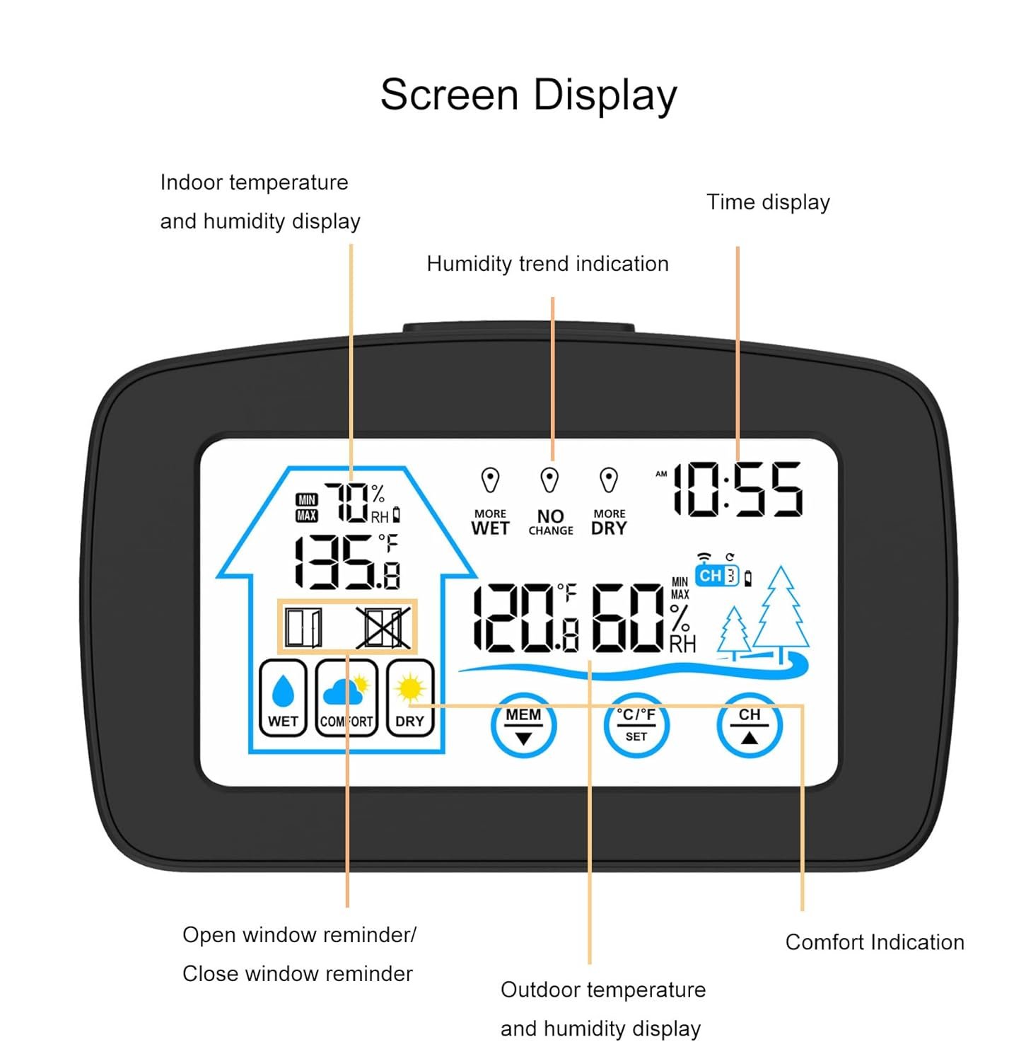 Lancoon Station Météo Numérique, Capteur Extérieur avec Télécommande Indication de Confort Intérieur Température Humidité Rétro-éclairage pour Salon Maison