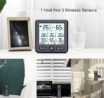 Lancoon Thermomètre numérique hygromètre avec 3 capteurs sans fil LCD Rétro-éclairage Température Humidité Station Météo Heure Date Semaine Alarme Over-Limit pour Intérieur Extérieur