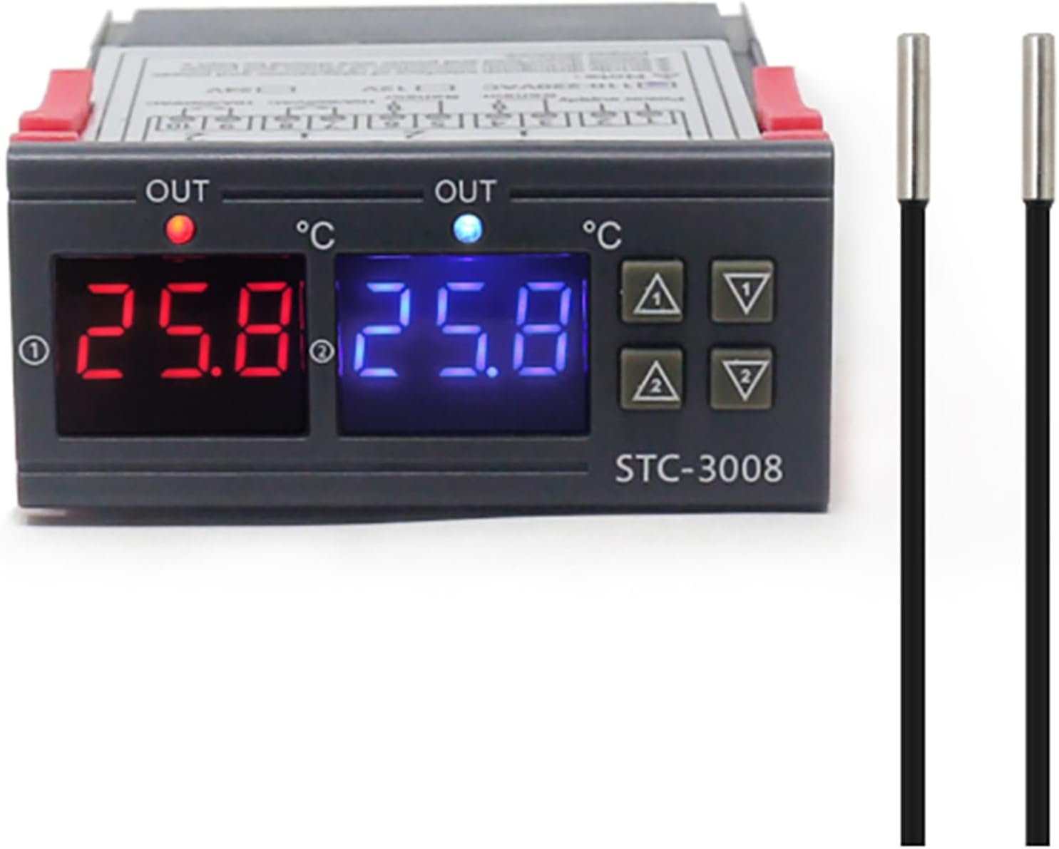 Limtula Thermostat Numérique À Double Affichage Contrôleur Température Capteurs À Double Sonde pour Ferme Divers Réfrigérateurs