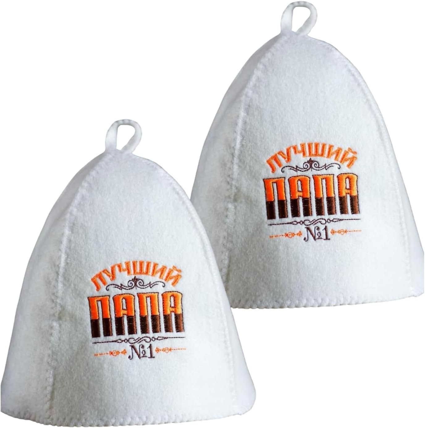 Lot de 2 chapeaux de sauna avec broderie « Best Dad » – Laine et polyester – Blanc – Réglables – Protection contre la surchauffe – Idéal pour les amateurs de bain