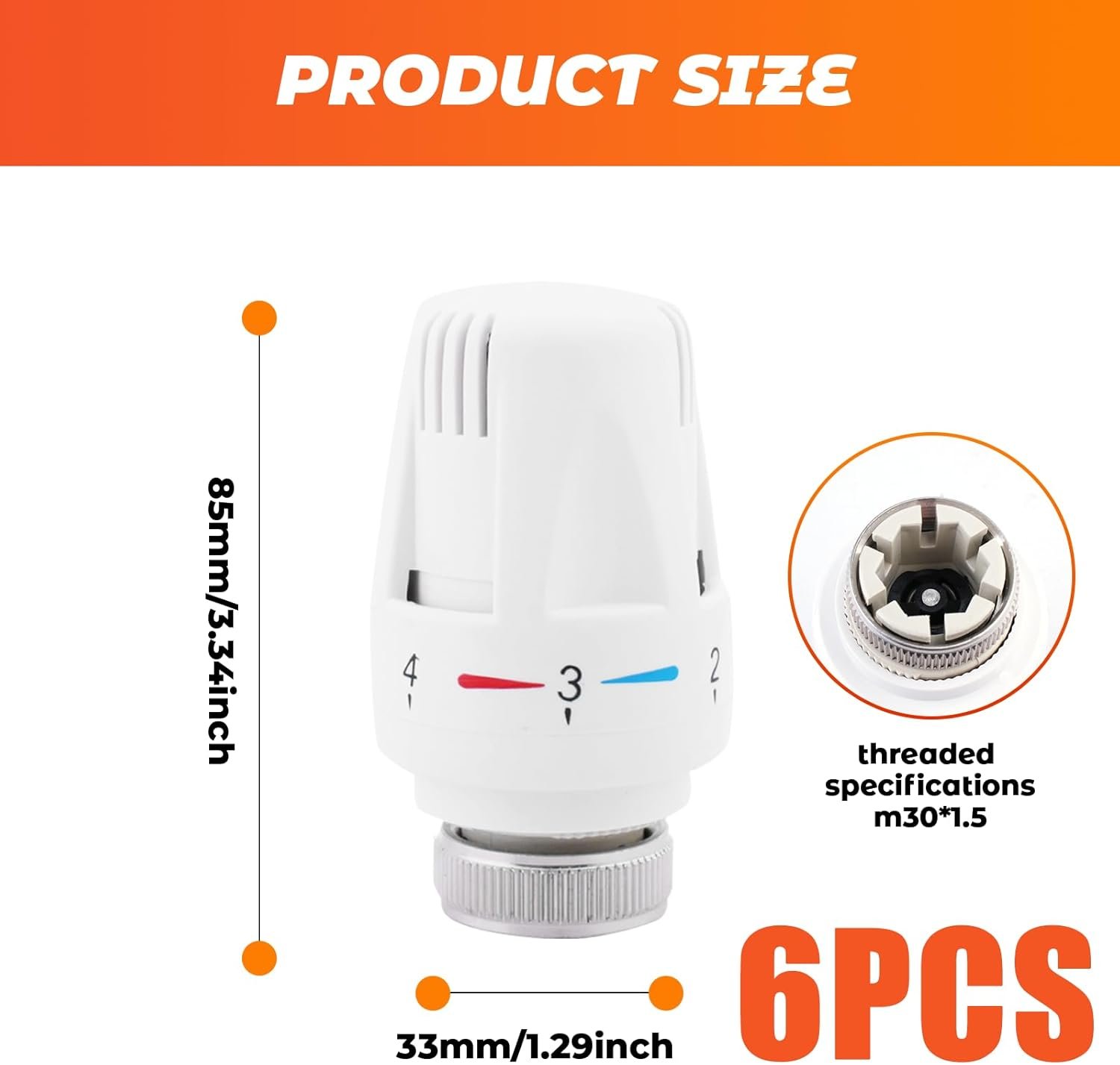 Lot de 6 Têtes Thermostatiques Smart Valve de Radiateur M30 x 1,5 – Thermostat de Chauffage et Valve de Rechange