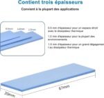 Lot de 9 épaisseurs assorties 0,5 1,0 1,5 mm Pads en silicone thermoconducteurs avec conductivité thermique de 6,0 W/mk, Soft Safe Simple à appliquer pour SSD CPU GPU-Bleu