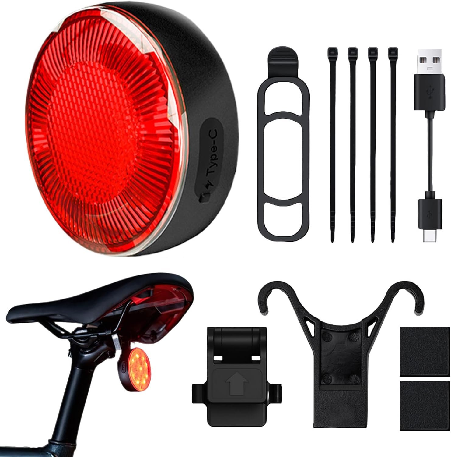Lumière du vélo arrière, lumière du vélo pour la Conduite – Voyant de capteur de Frein Intelligent pour vélo,Failloir imperméable Rechargeable, 5 Modes d’éclairage, avertissements Accessoires