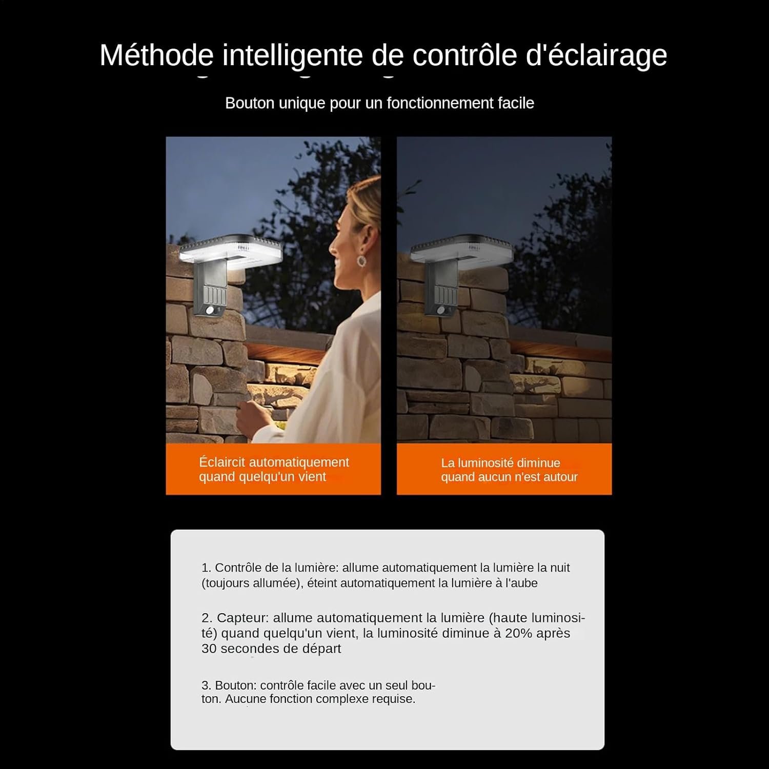 Lumière Solaire Murale | Lampadaire Solaire Étanche avec Capteur de Mouvement – Éclairage Intelligent Haute Luminosité avec Détecteur de Mouvement pour Terrasse, Jardin, Allée et Garage