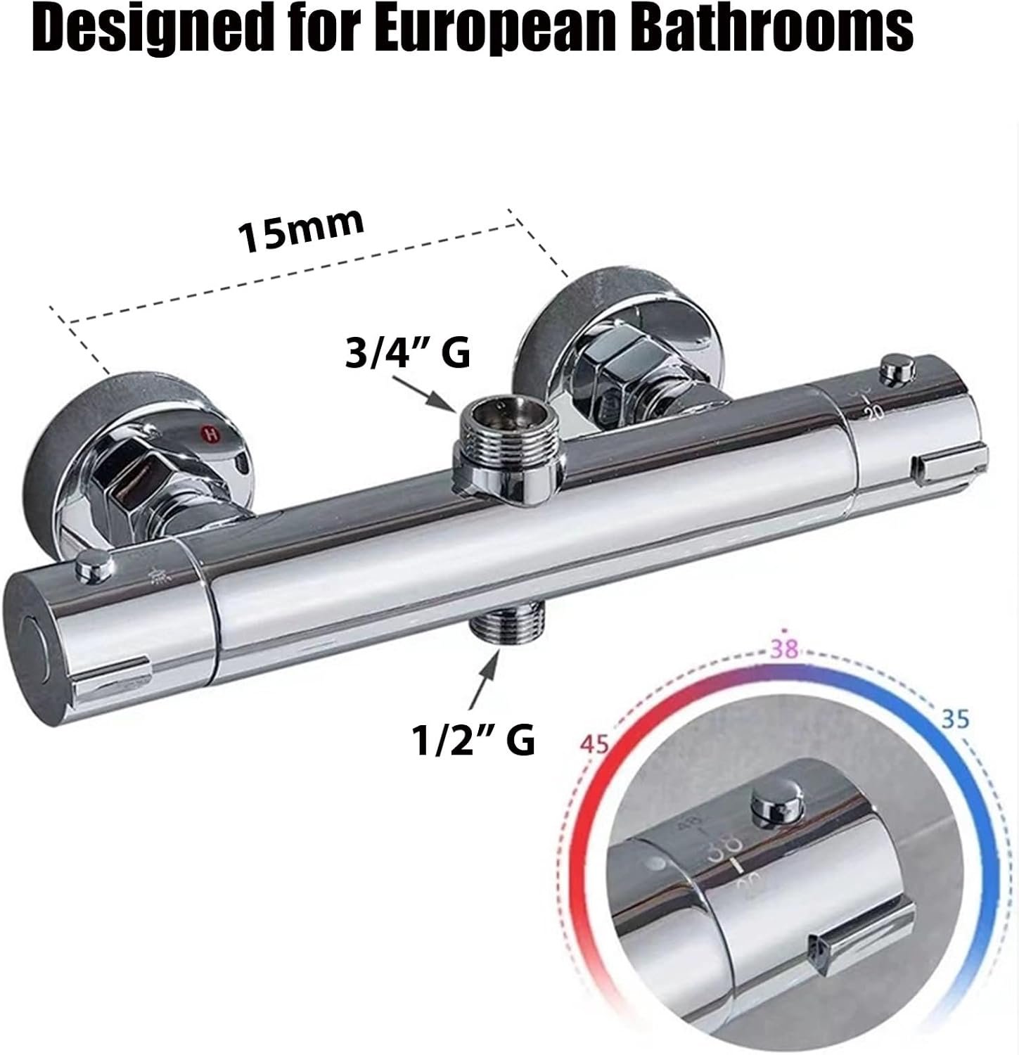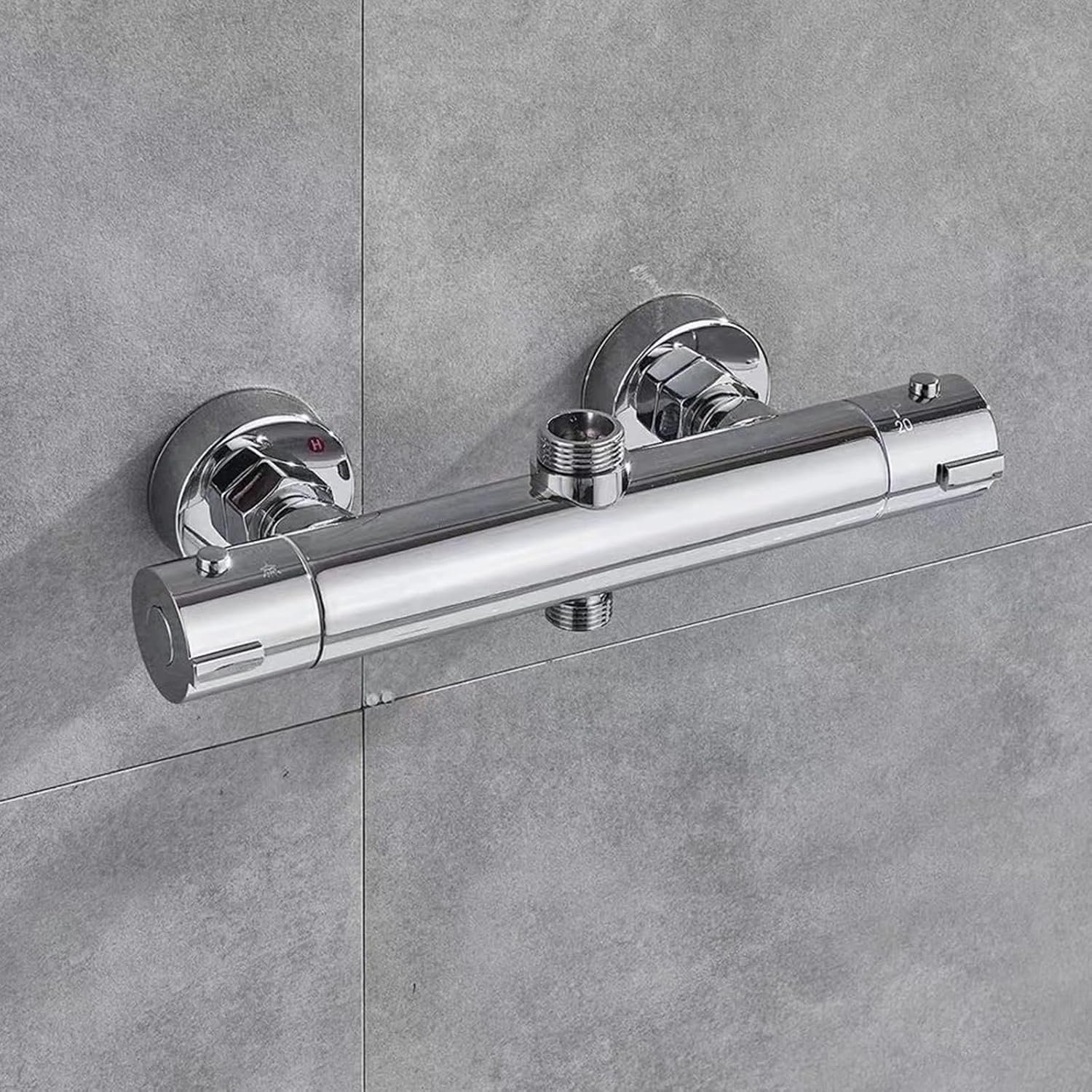 Mitigeur de douche thermostatique en laiton chromé, anti-brûlure pour douche de salle de bain, sortie supérieure 1,9 cm, sortie inférieure 1,27 cm, montage mural