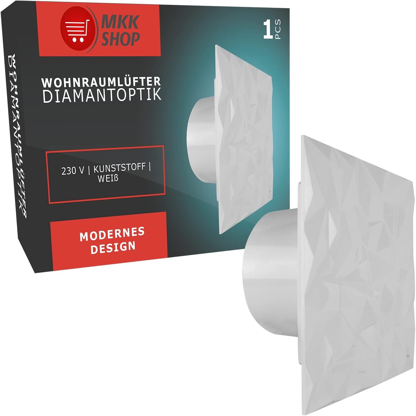 Be the first to review “MKK Ventilateur de salle de bain avec panneau diamant – Blanc – Diamètre : 125 mm – Capteur d’humidité/hygrostat” Cancel reply