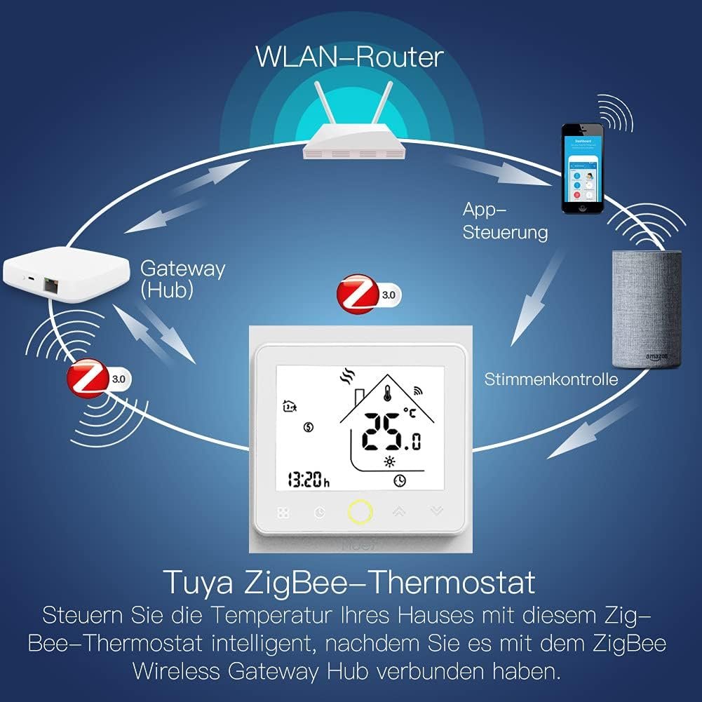 MOES Smart Tuya ZigBee Alexa Thermostat de Chauffage au Sol sans Fil pour Chauffage électrique 16A Compatible avec l’application Smart Life Tuya Alexa Google [Uniquement pour Hubs Tuya ZigBee]