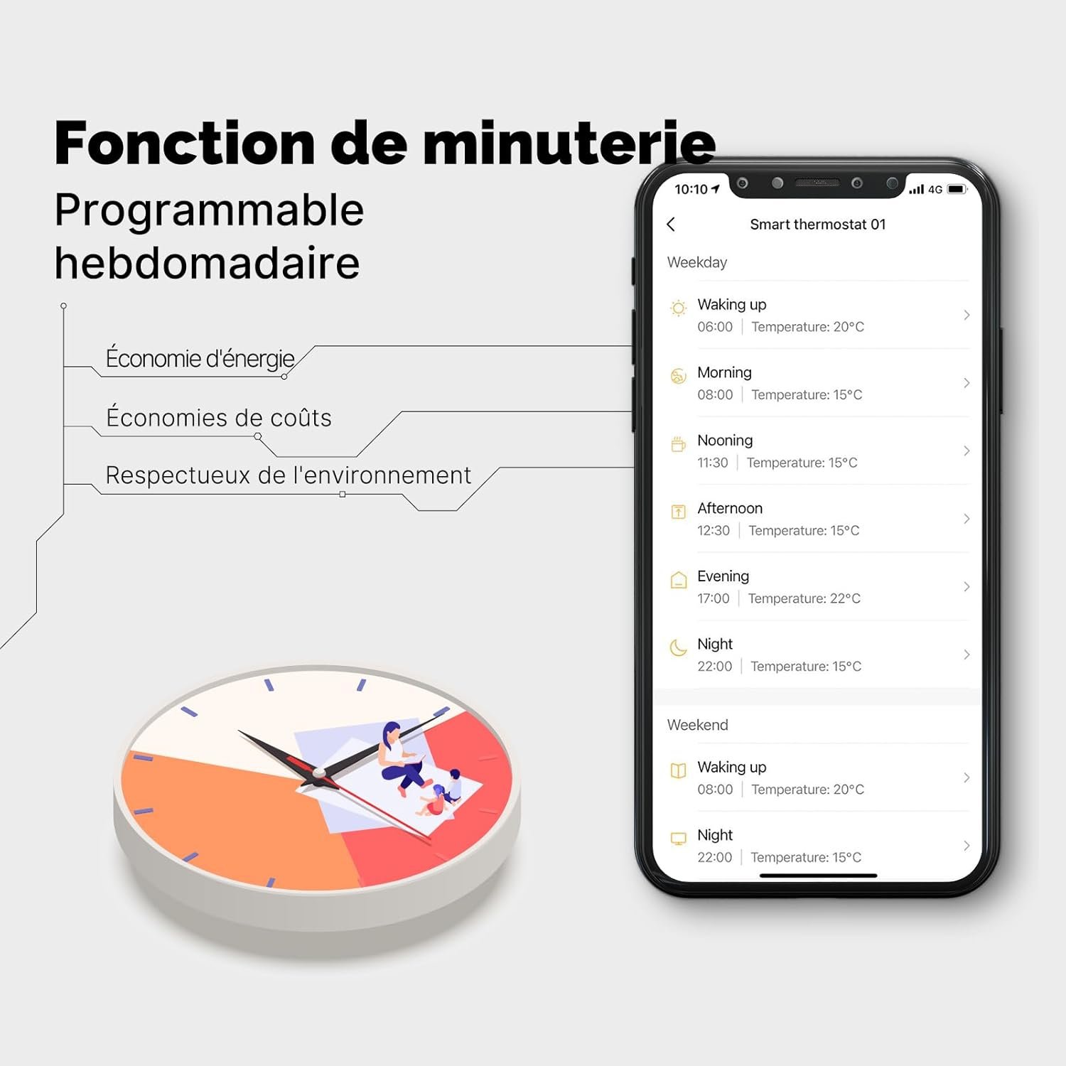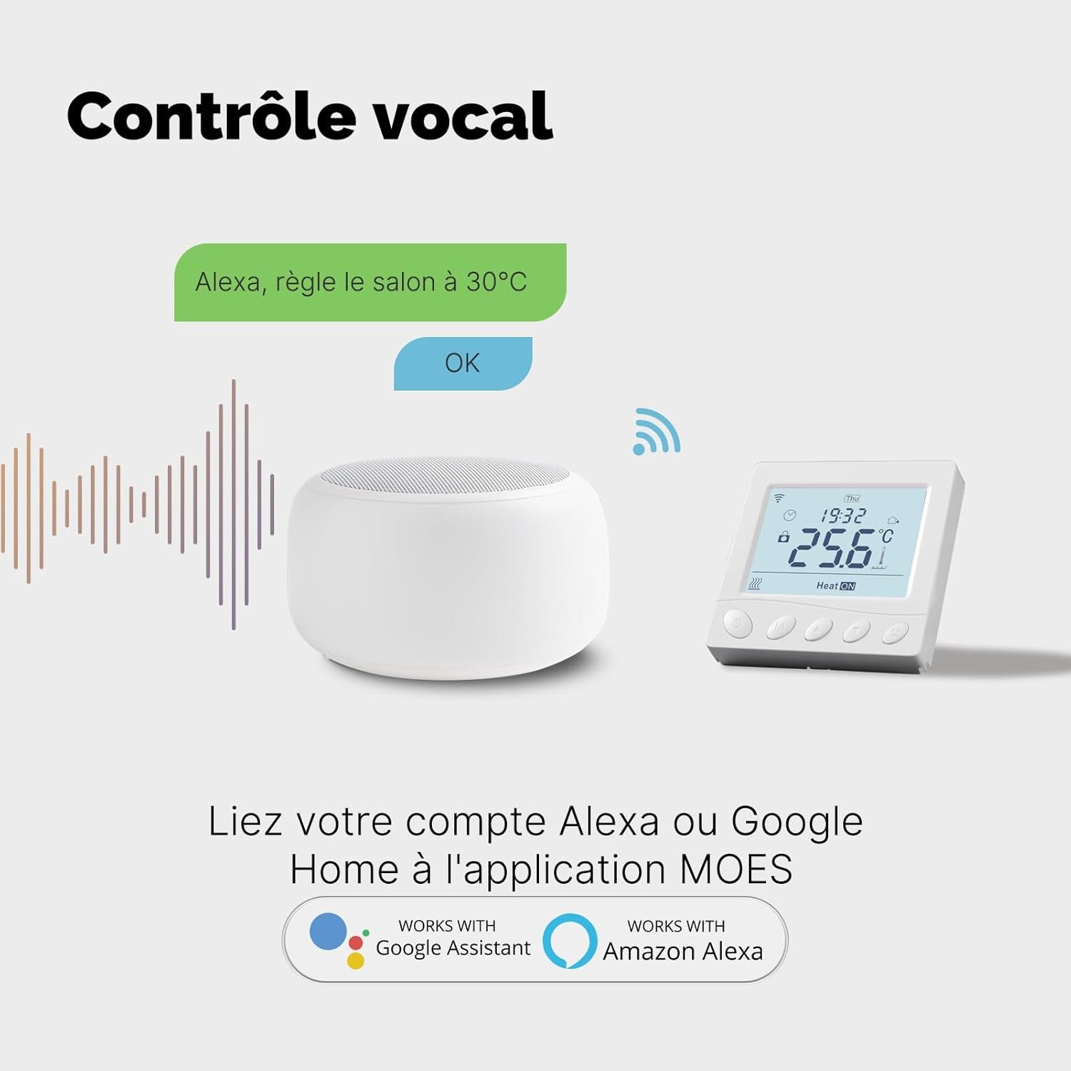 MOES Thermostat Connecté WiFi Plancher Chauffant à Eau, Calendrier et Télécommande sans Hub, Compatible avec Alexa, Google Home 3A,Blanc