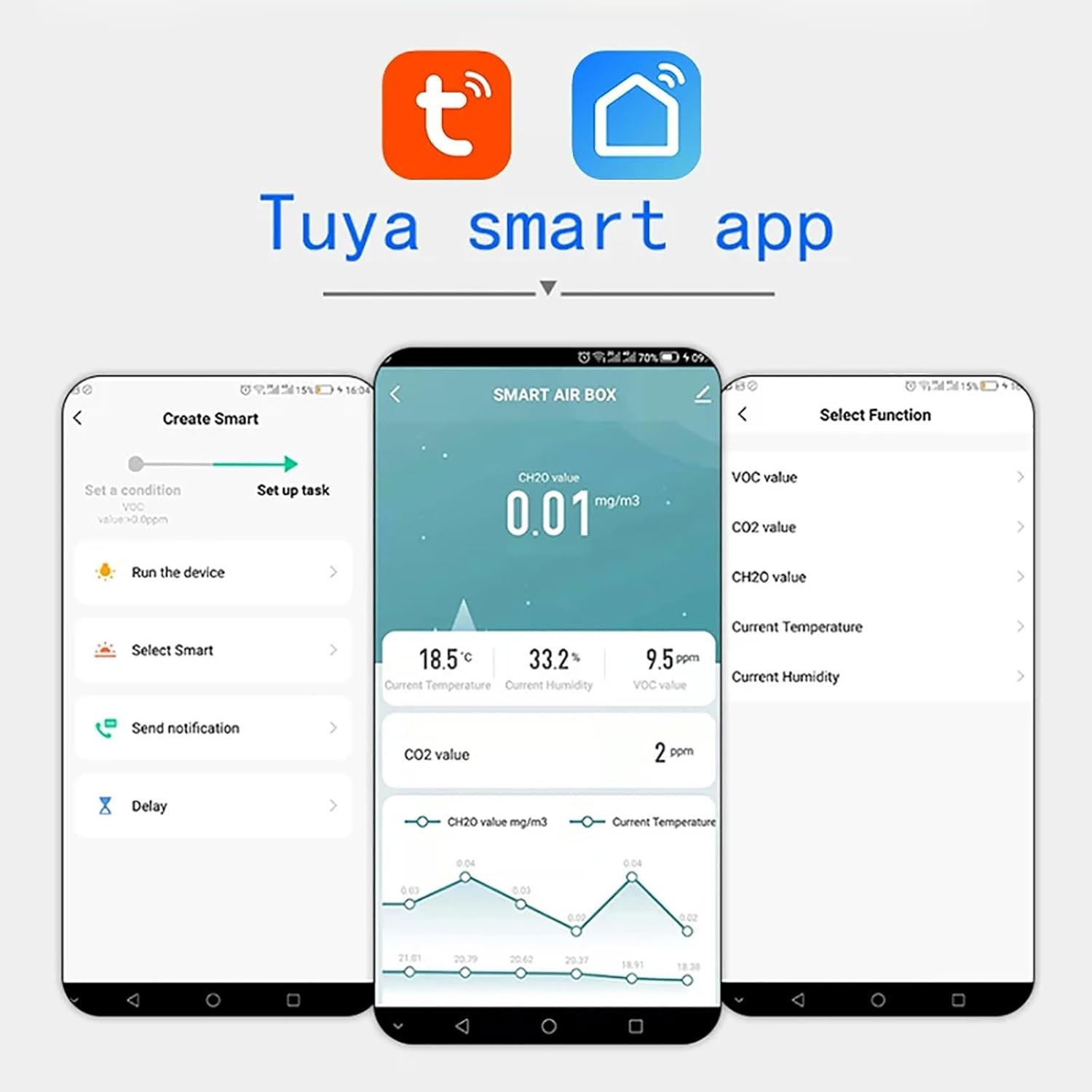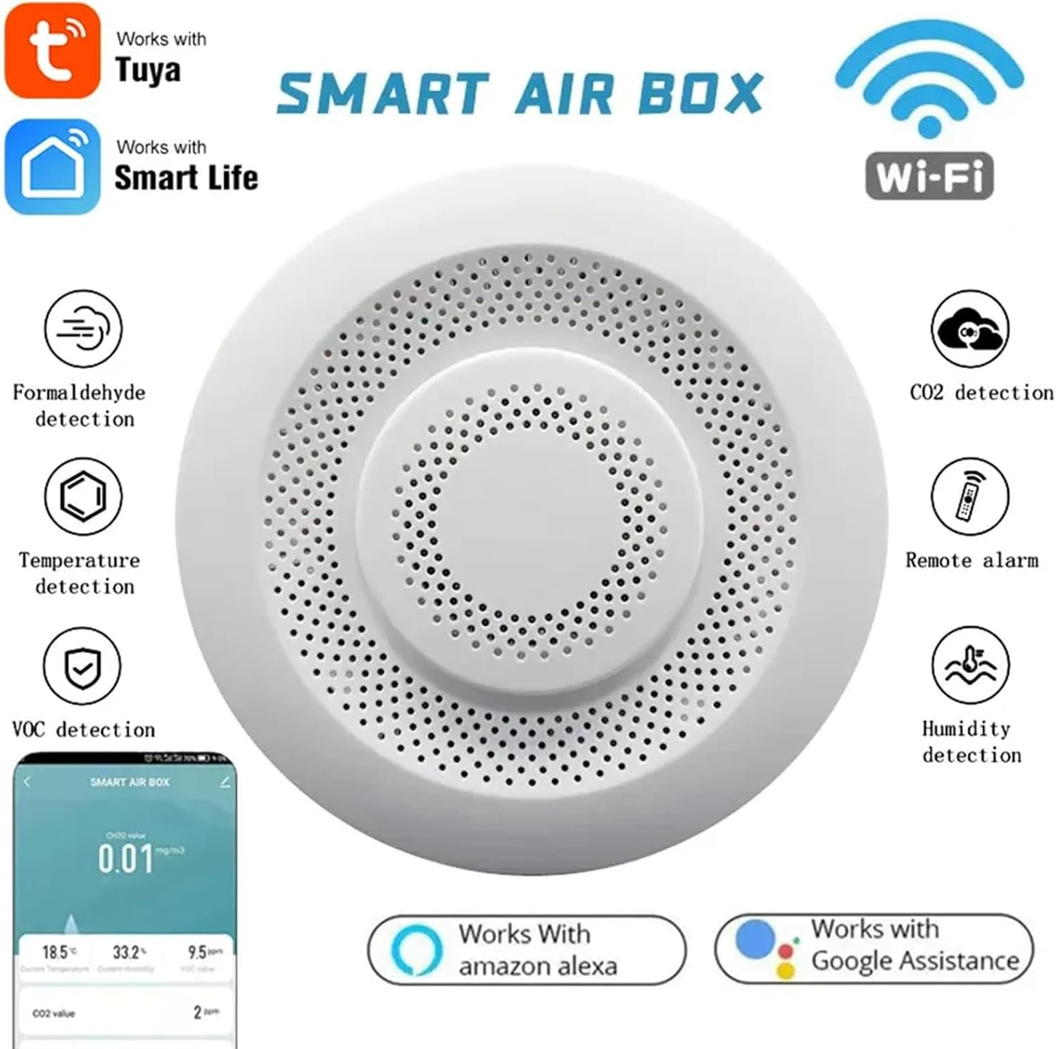 Moniteur intelligent de qualité de l’air : le testeur de qualité de l’air intérieur Wi-Fi Tuya détecte CH2O, CO2, concentration de CO2, température et humidité, thermomètre et humidité