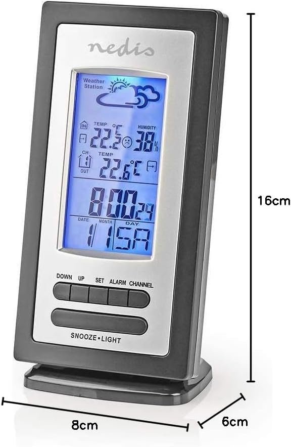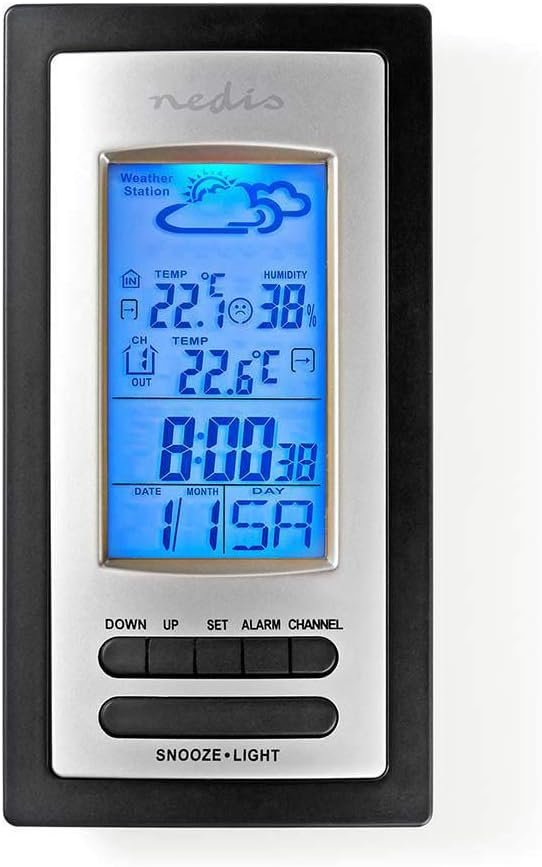 Nedis – Station météo – Alarme – Hygromètre – Capteur extérieur – Noir/Argent