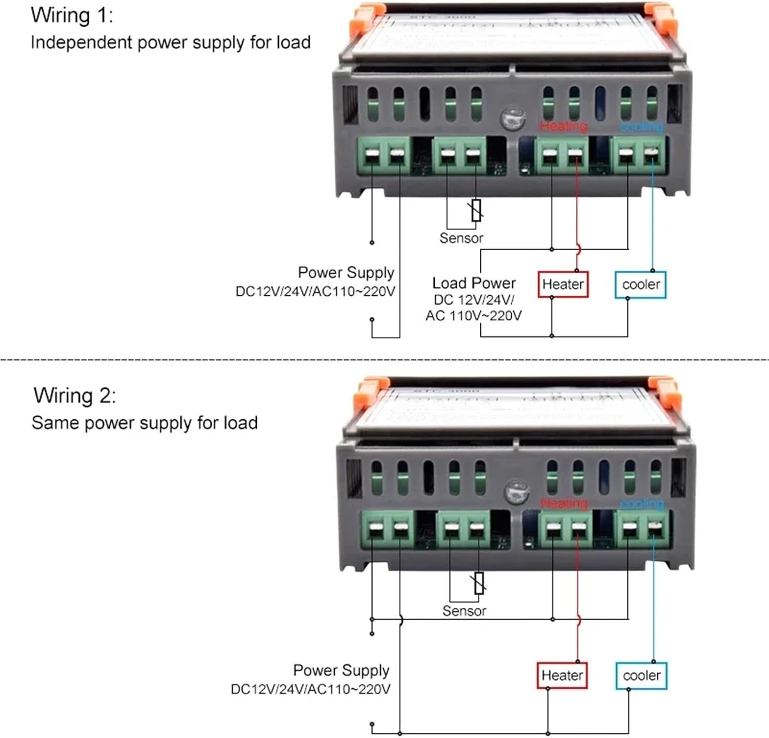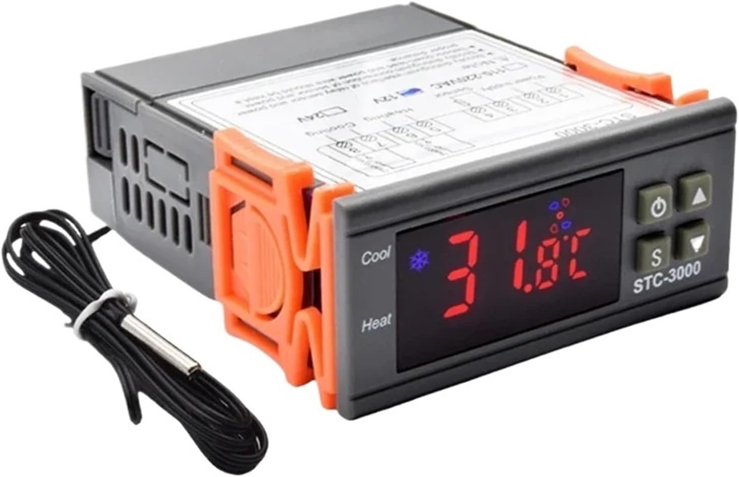 NFRFK STC-3000 Contrôleur de température numérique LED pour micro-ordinateur, thermostat à affichage « C/’F » AC 220 V CC 12 V CC 12 V (DC 12 V)
