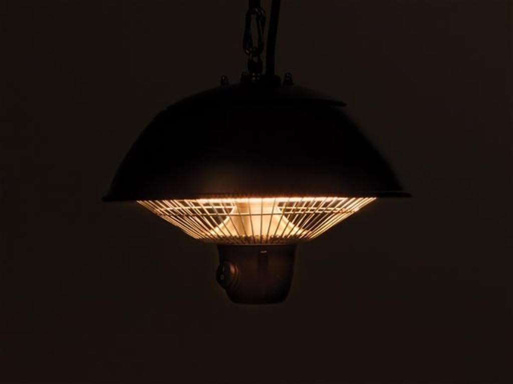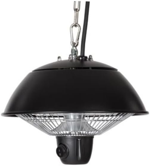 Perel Chauffage de terrasse suspendu, 600 W, halogène, à suspendre, avec chaîne de suspension, interrupteur, 1 niveau de chauffe, protection contre les jets d’eau, métal, noir