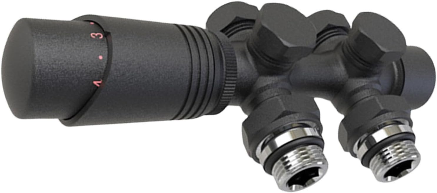 PLCPDM Vannes Radiateurs Anthracites Réglés avec Thermostat Bloc Robinet pour Contrôle Température Efficace dans Les Salles Bains G1 / 2