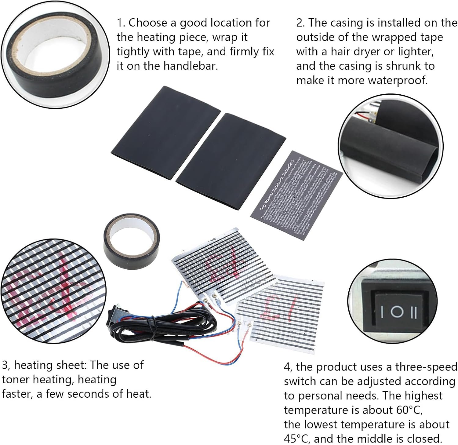 Be the first to review “Poignée de moto chauffante intelligente à trois contrôle de la température 12 V pour des promenades chaudes et confortables”