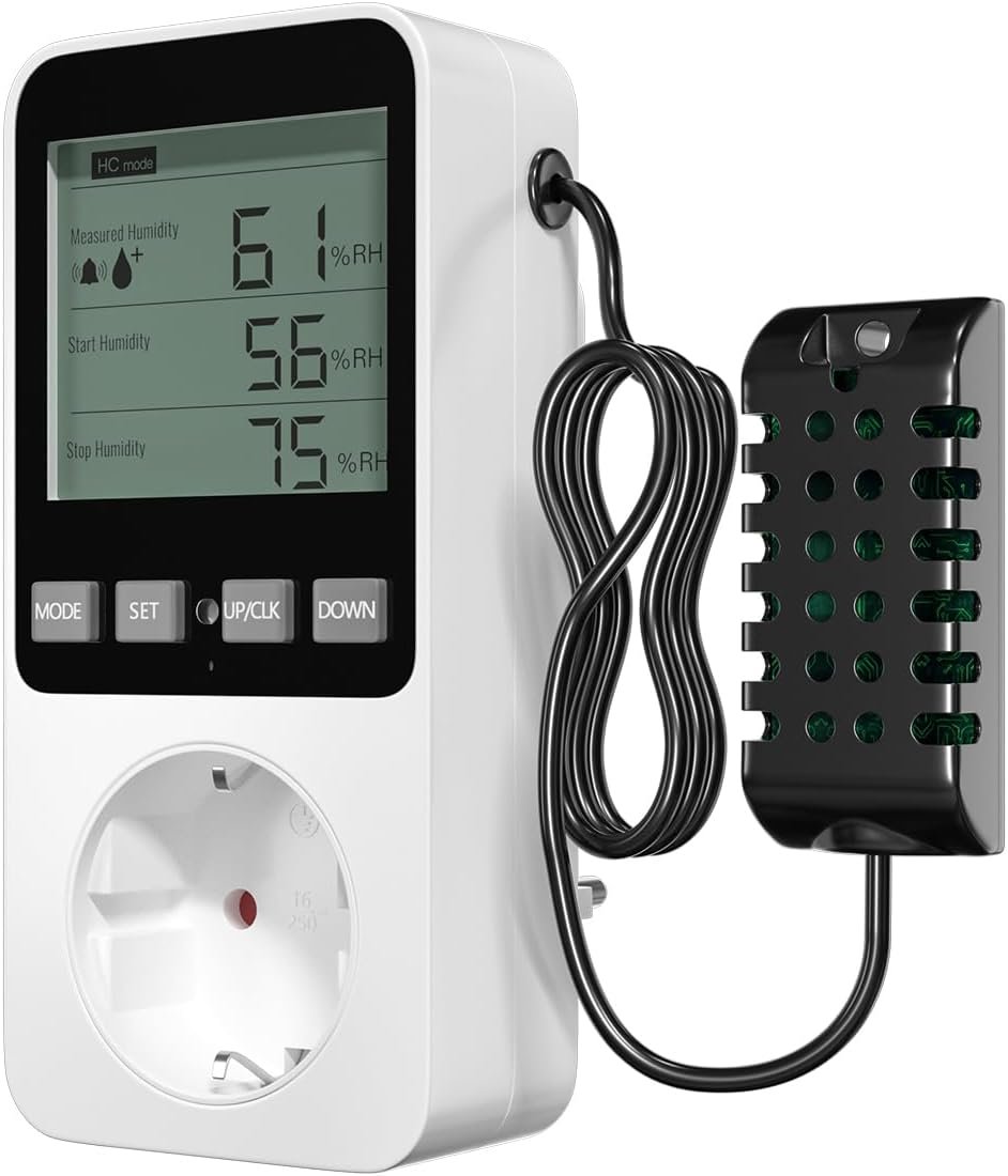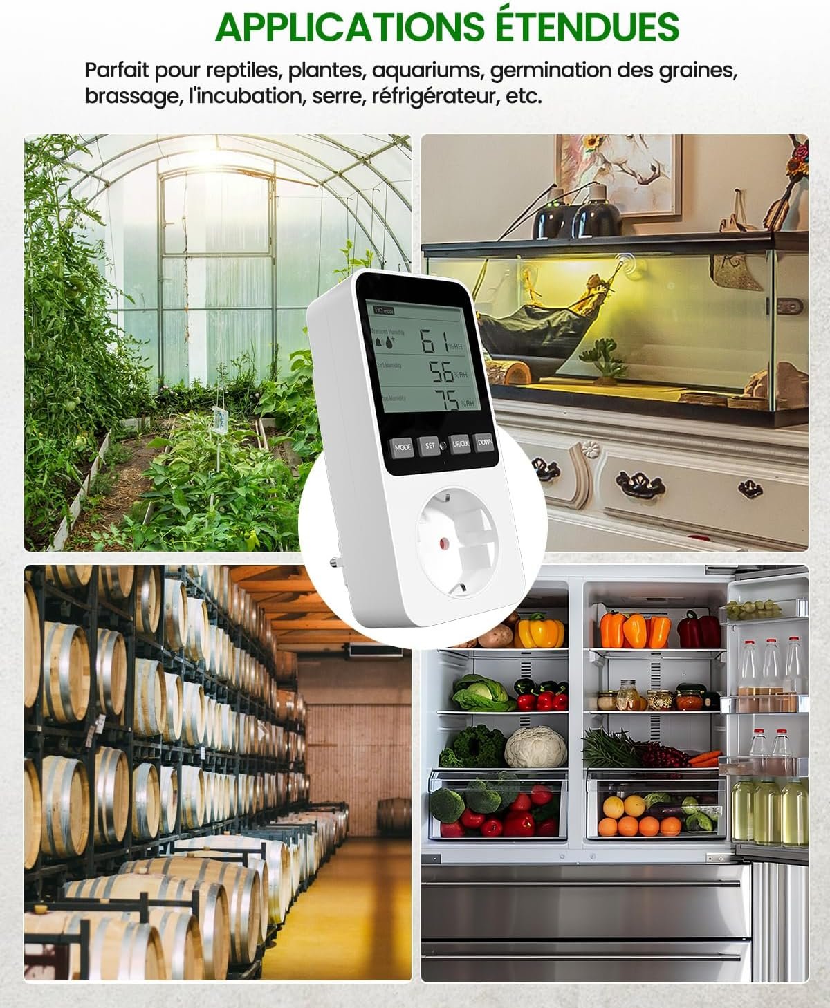 Prise Thermostat Hygrostat Numérique, Contrôleur de Température et d’humidité Prise avec Sonde, Alarme Régulateur Humidité Prise pour Terrarium Reptile Couveuse Incubateur Serre