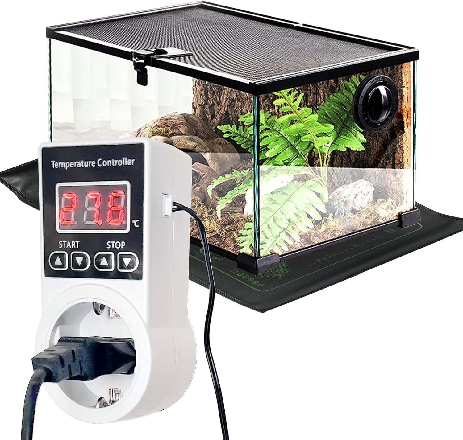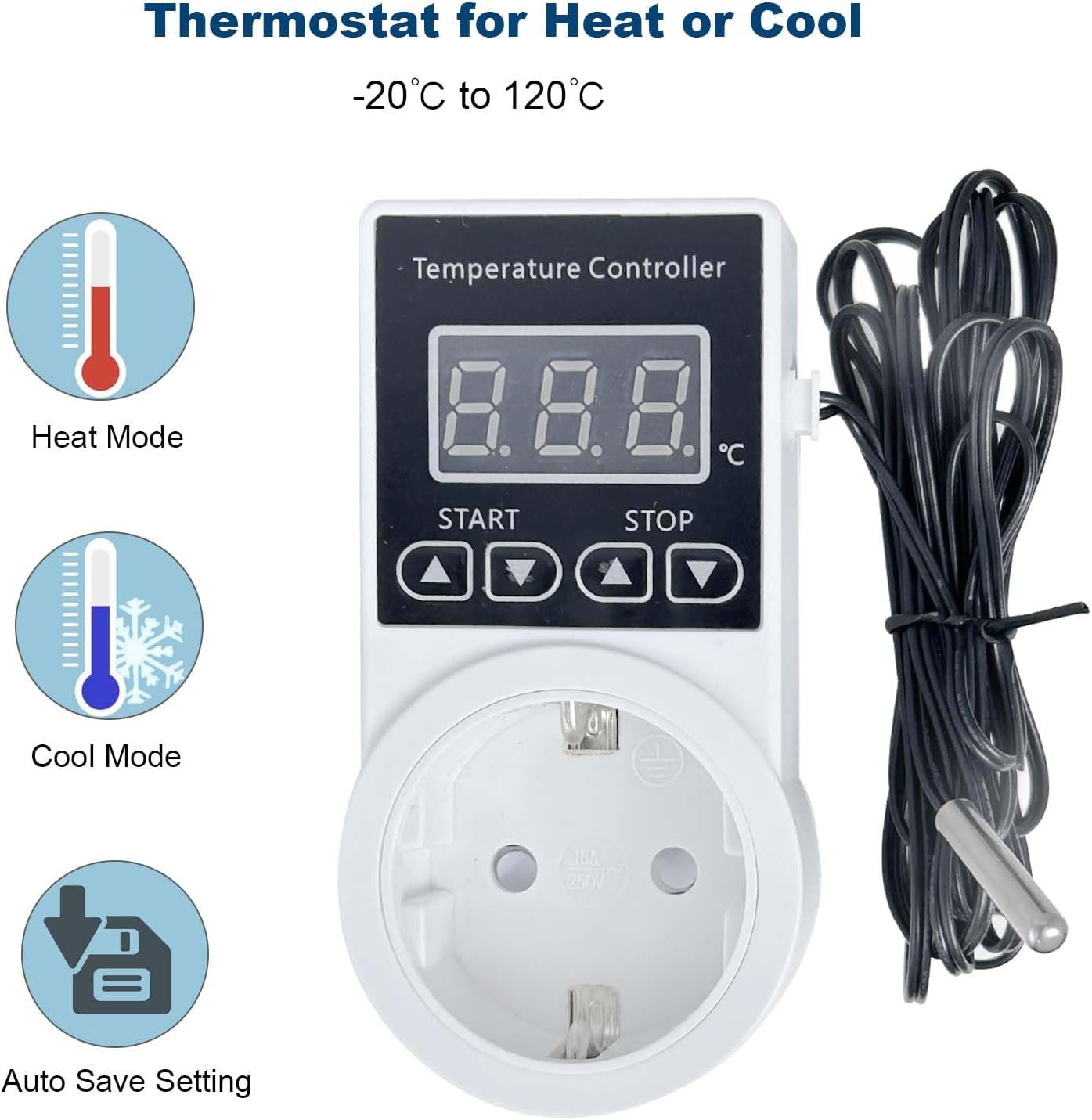Prise Thermostat Numérique avec Sonde, Régulateurs de Température Refroidissement Chauffage pour Tapis Chauffant Plantes, Chauffage de Serre, Aquarium Terrarium