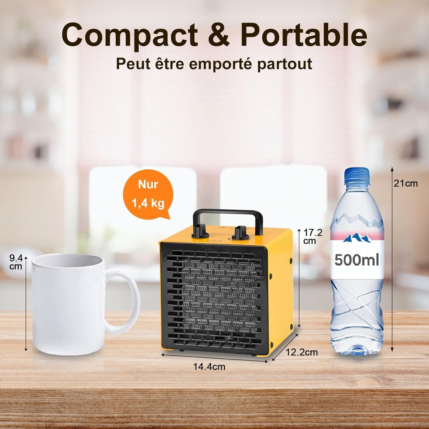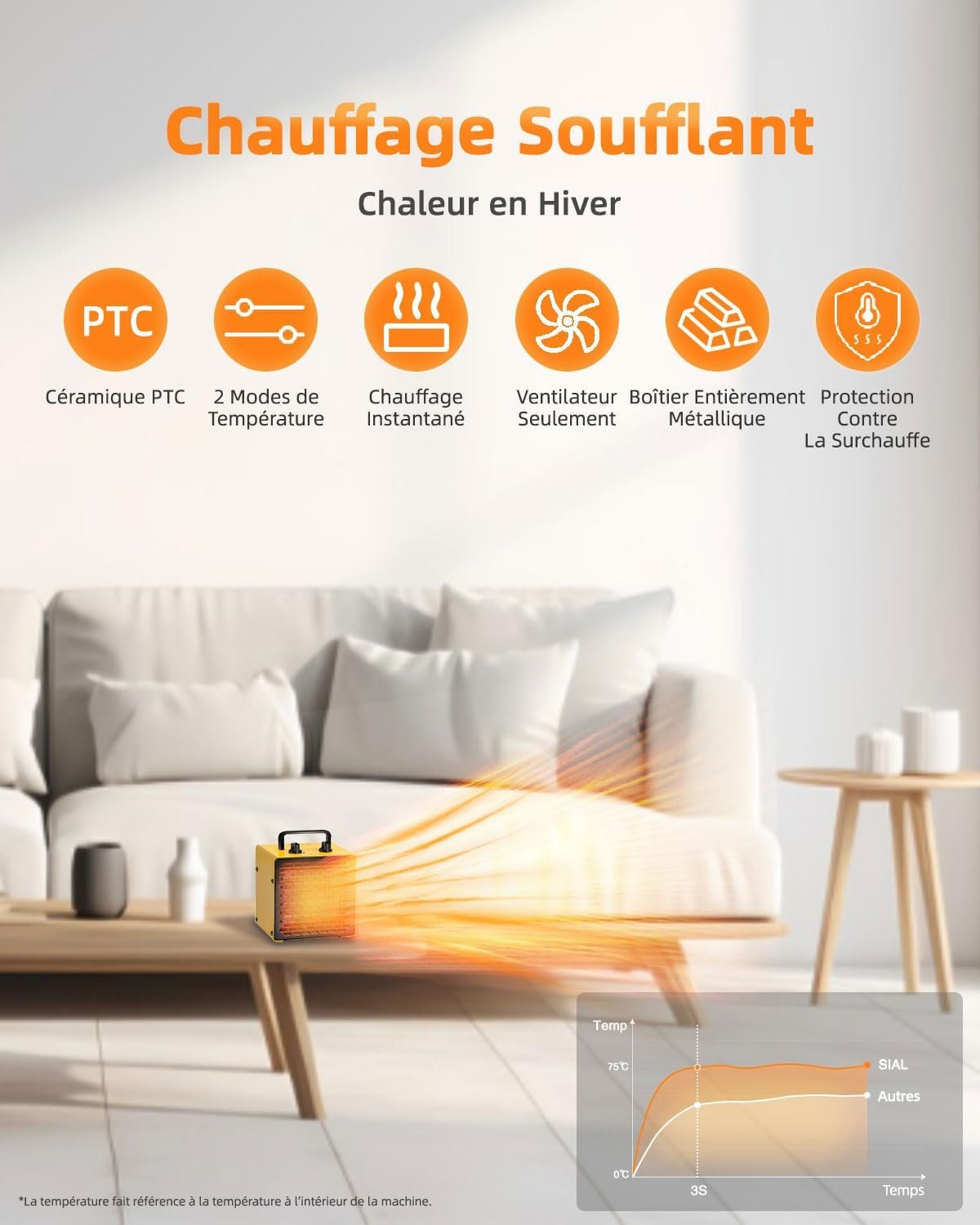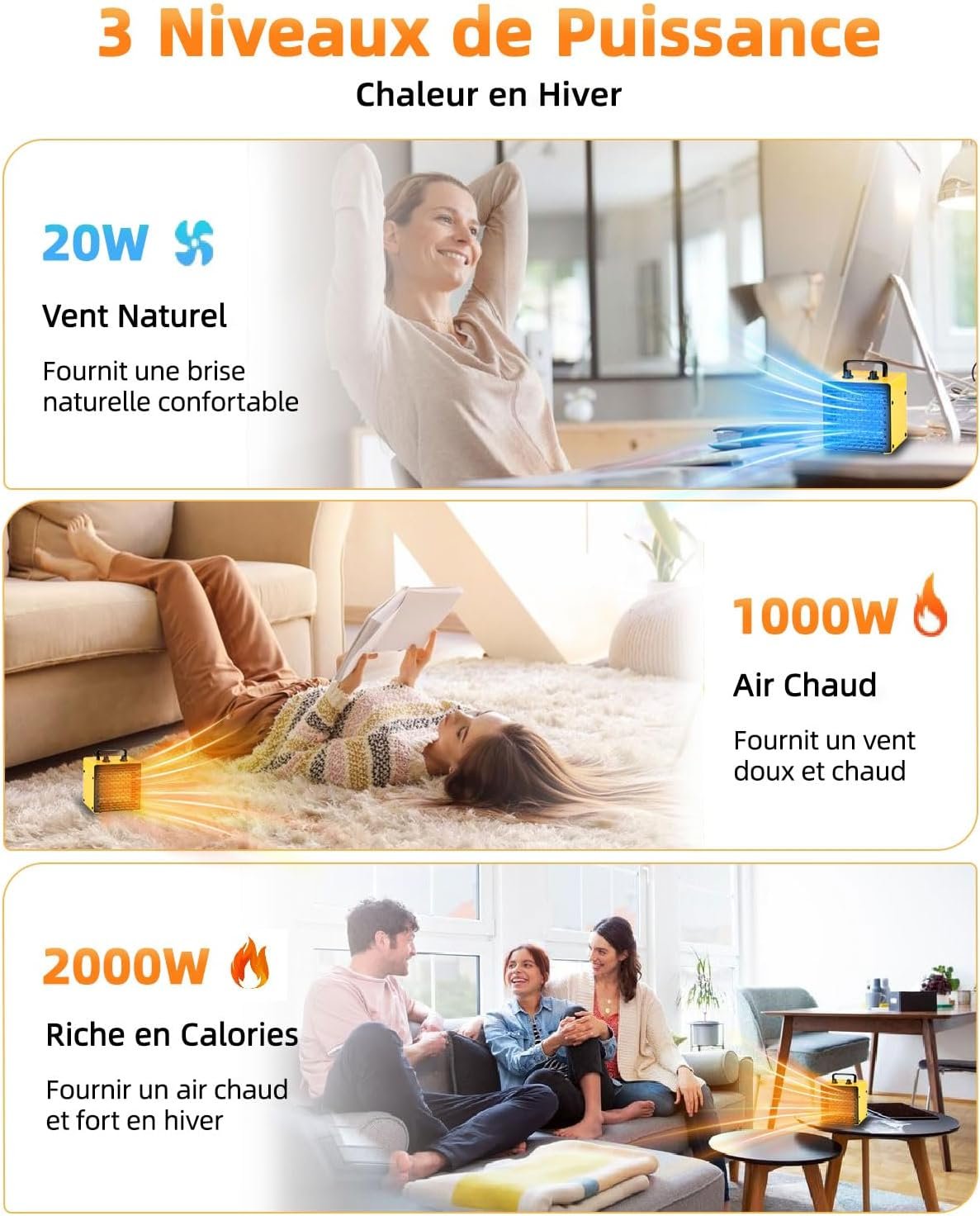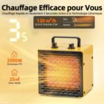 Radiateur électrique 2000 W Portable – Chauffage Soufflant – Céramique – Chauffage d’appoint – 3 Modes – Convient à l’ordinateur de bureau, au bureau et à la maison – PA2 – Jaune