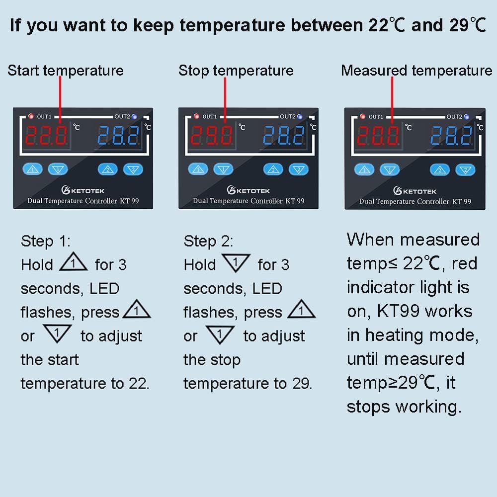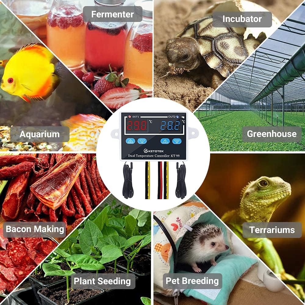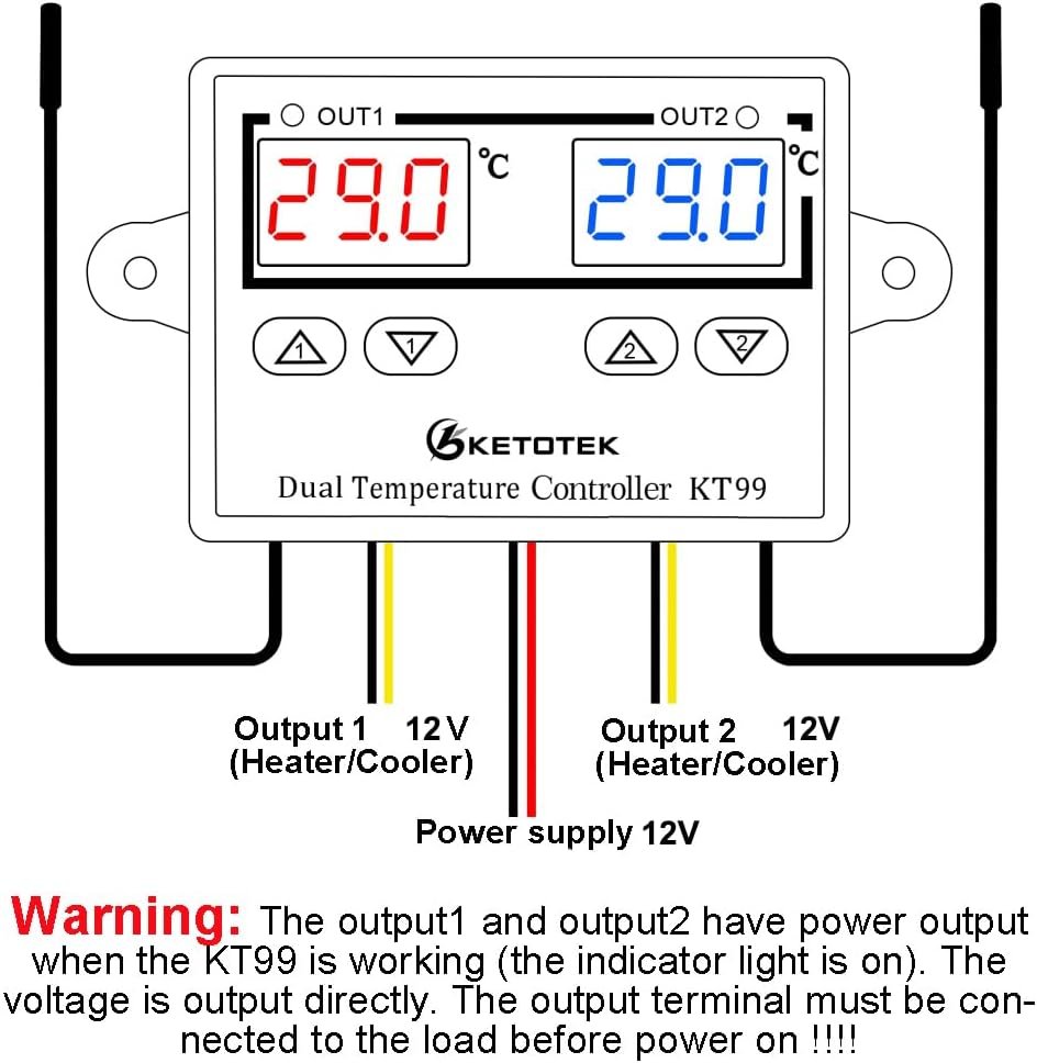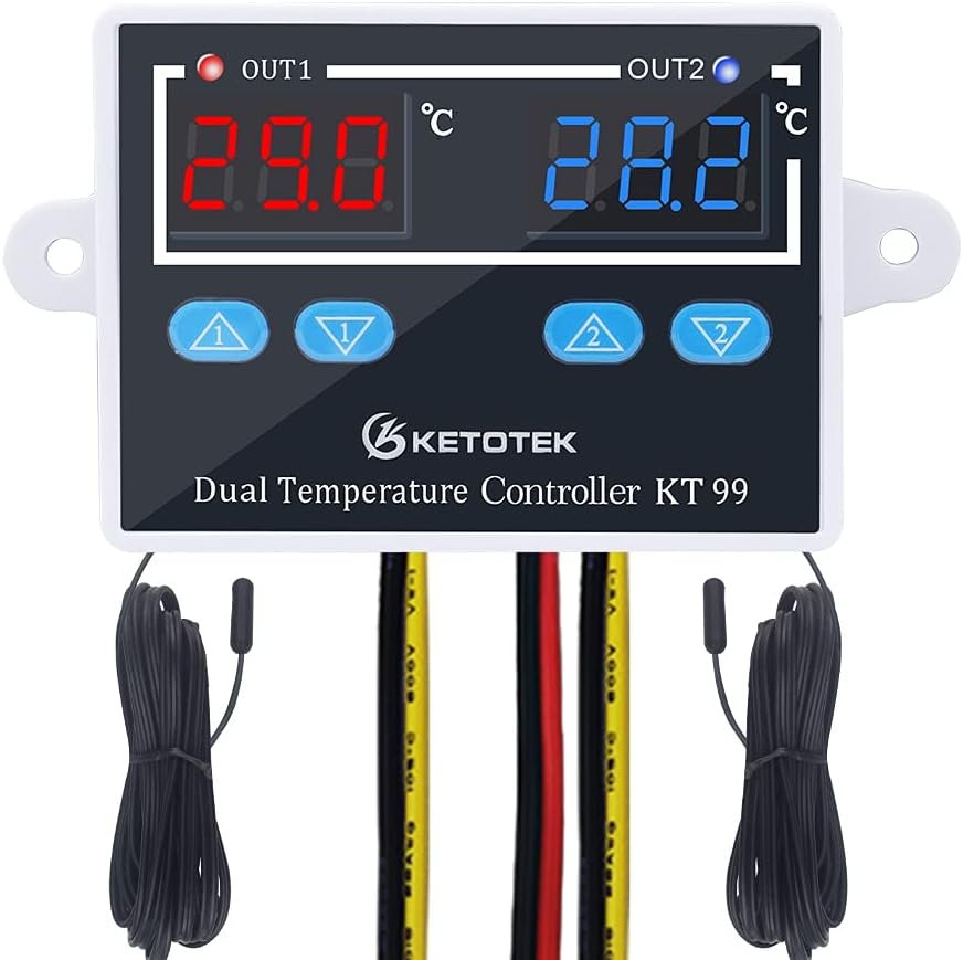 Regulateur de Temperature DC 12V Thermostat avec 2 étanche Sondes, Controleur de Temperature Numerique pour Aquarium Incubateur Serre Frigo Ventilateur