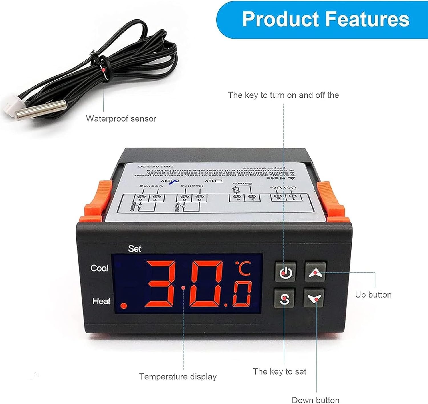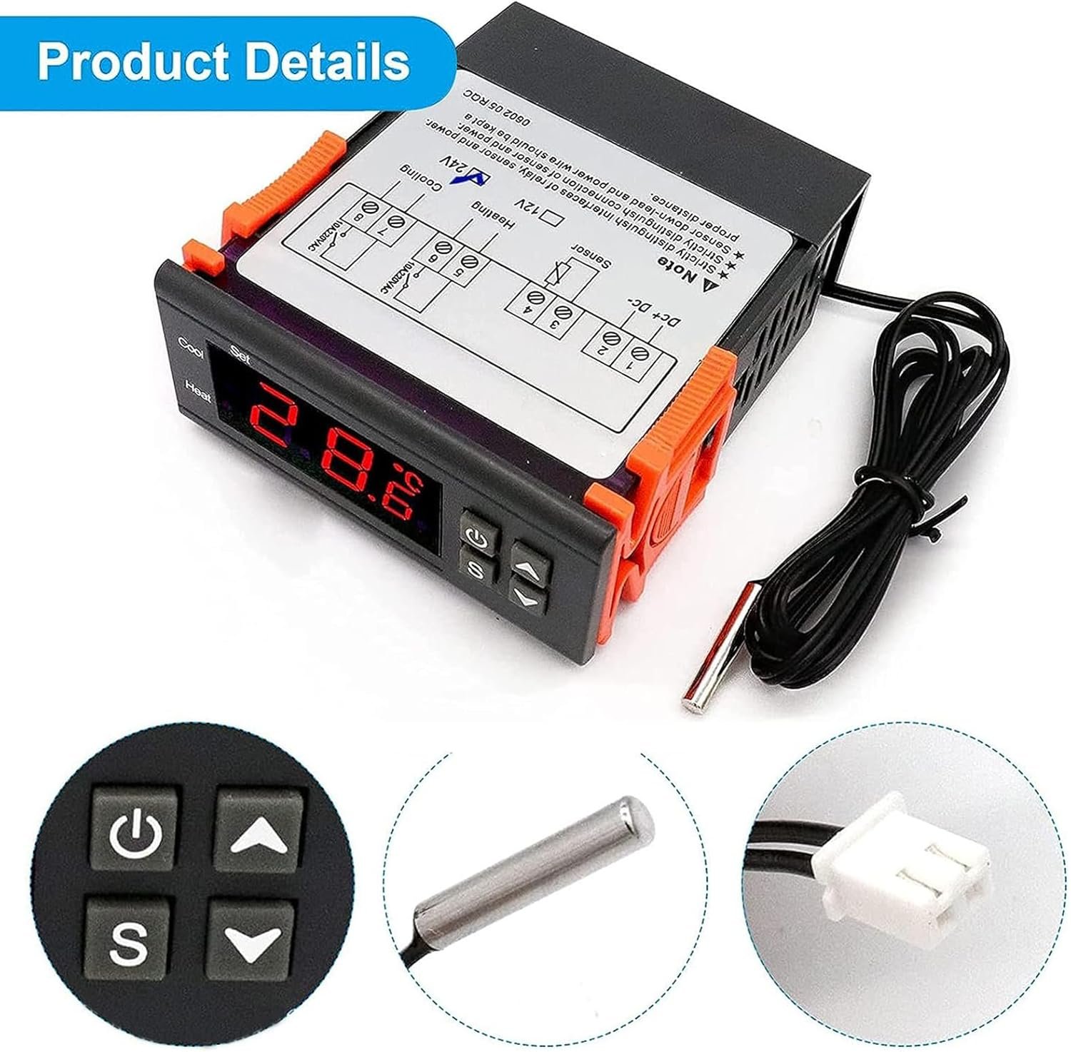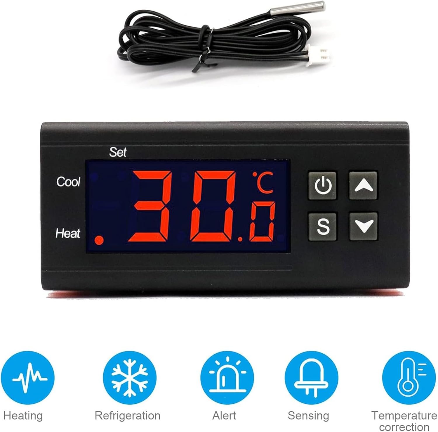 Regulateur de Temperature Numérique 10A D’affichage à LED Temperature Controller Thermostat Regulateur avec Capteur (DC 24V)