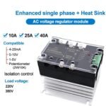 Relais régulateur de tension avec dissipateur thermique 220 V 380 V 10 A 25 A 40 A, contrôle monophasé amélioré, contrôleur de puissance CA, 1 pièce(10A,220V)